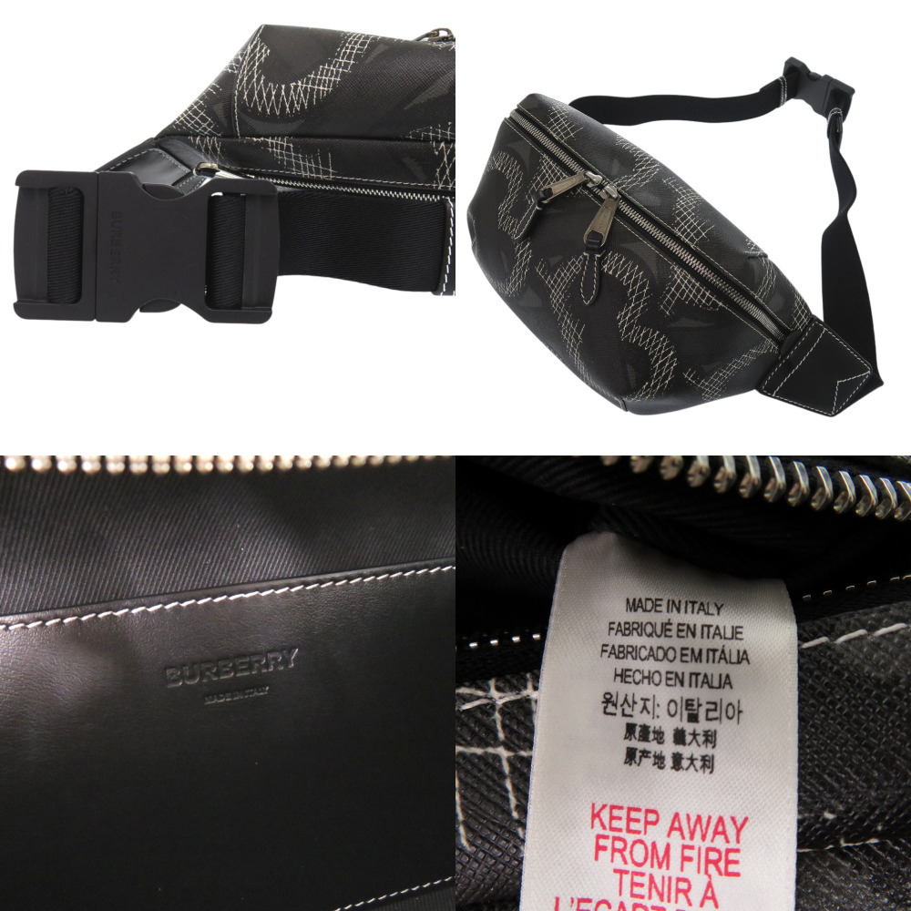 美品 バーバリー TBモノグラム ボディバッグ ワンショルダー ウエストバッグ PVC ブラック 1380 BURBERRY