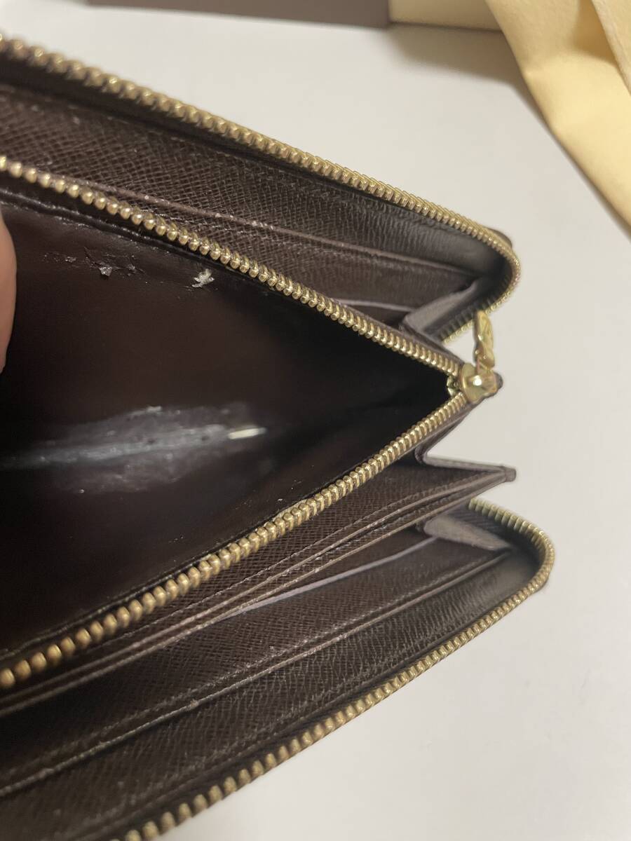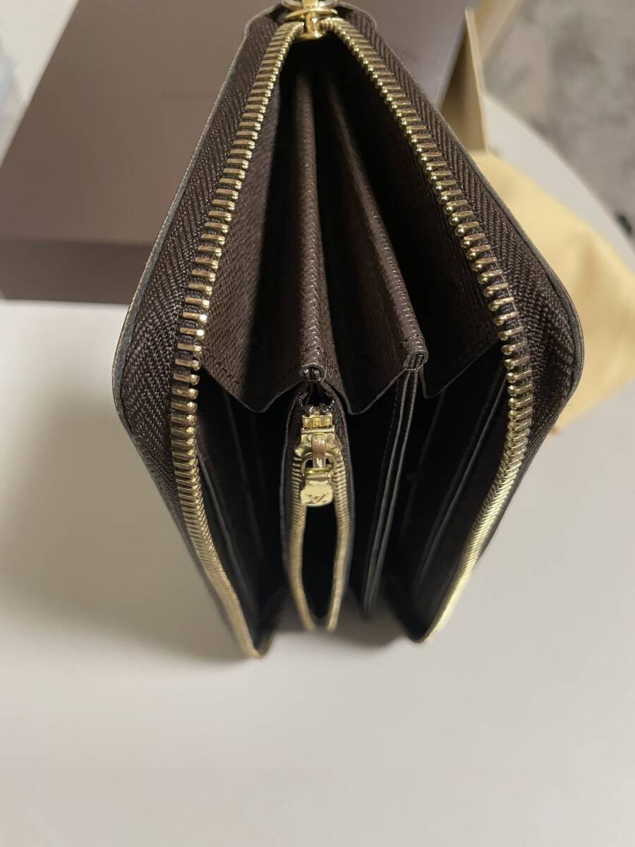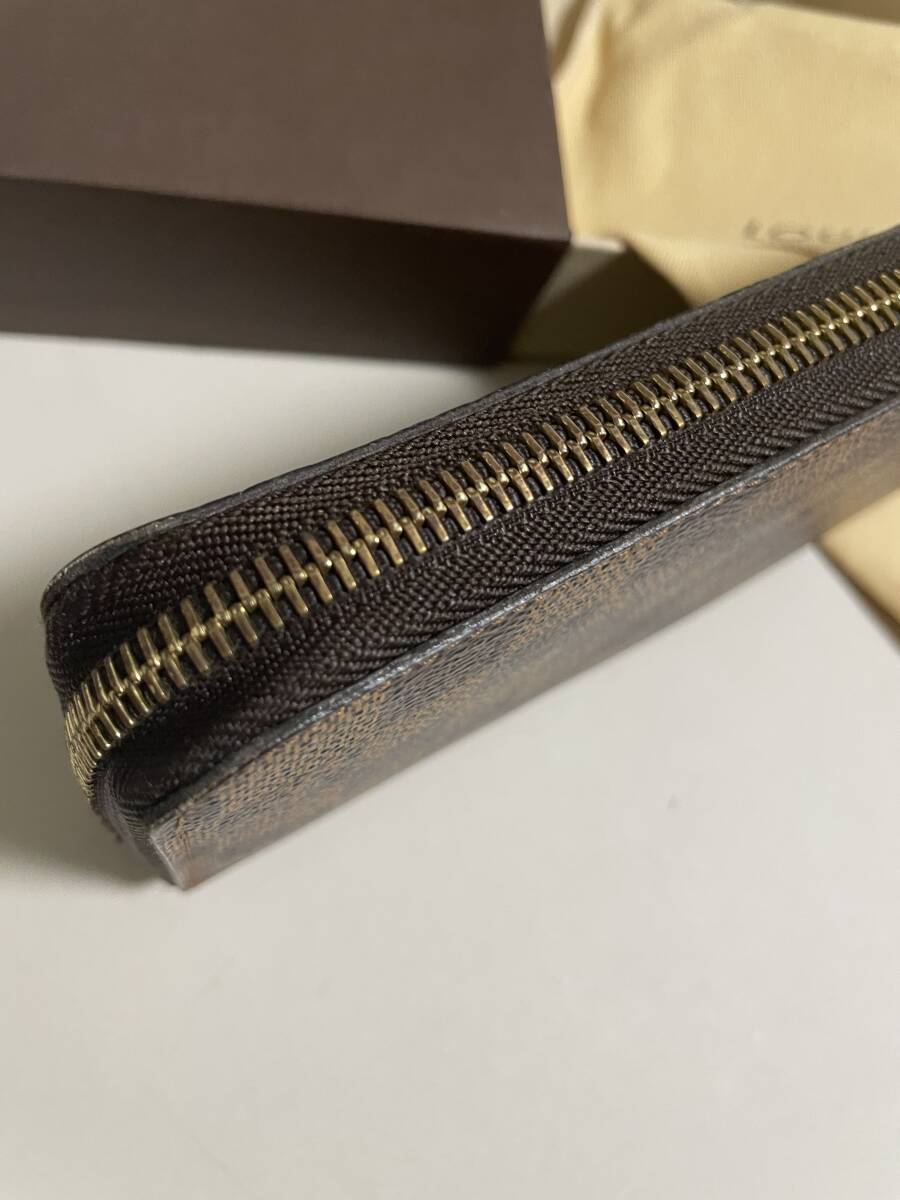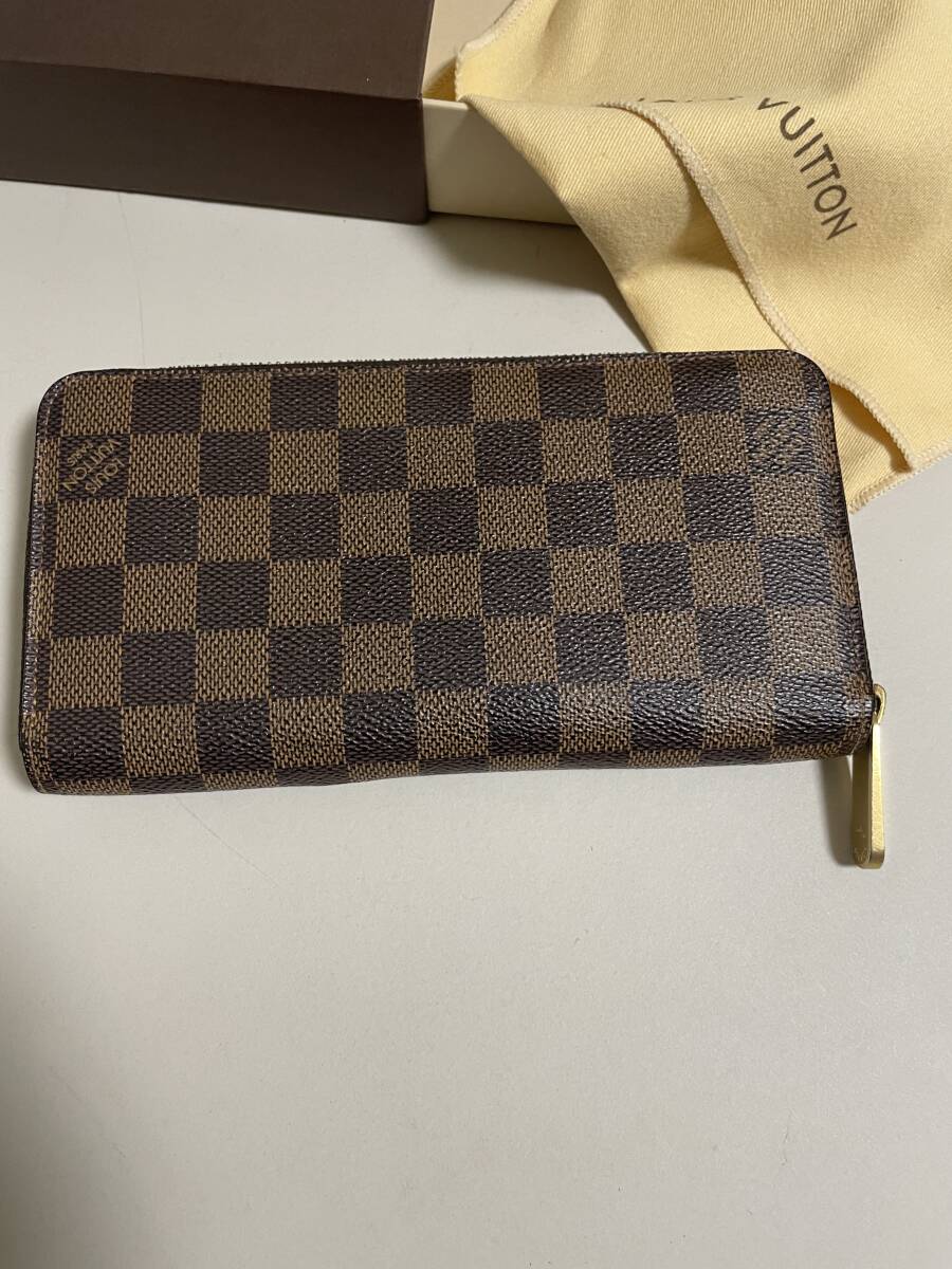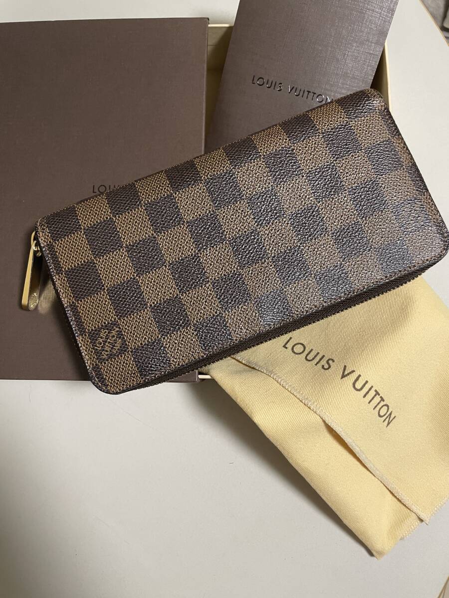 ダミエパターンのLOUIS VUITTON長財布、ゴールドジッパー付き。ジッピーウォレット ヴィンテージ
