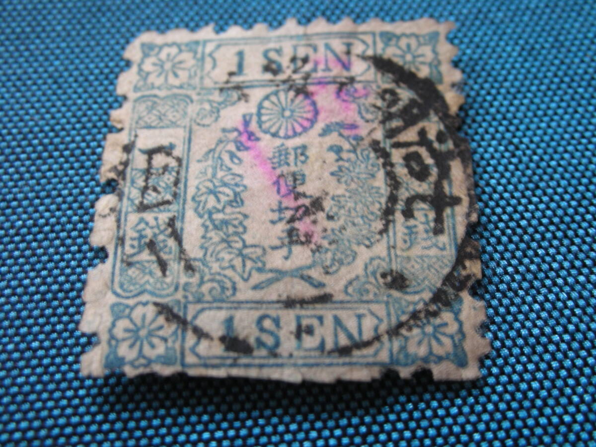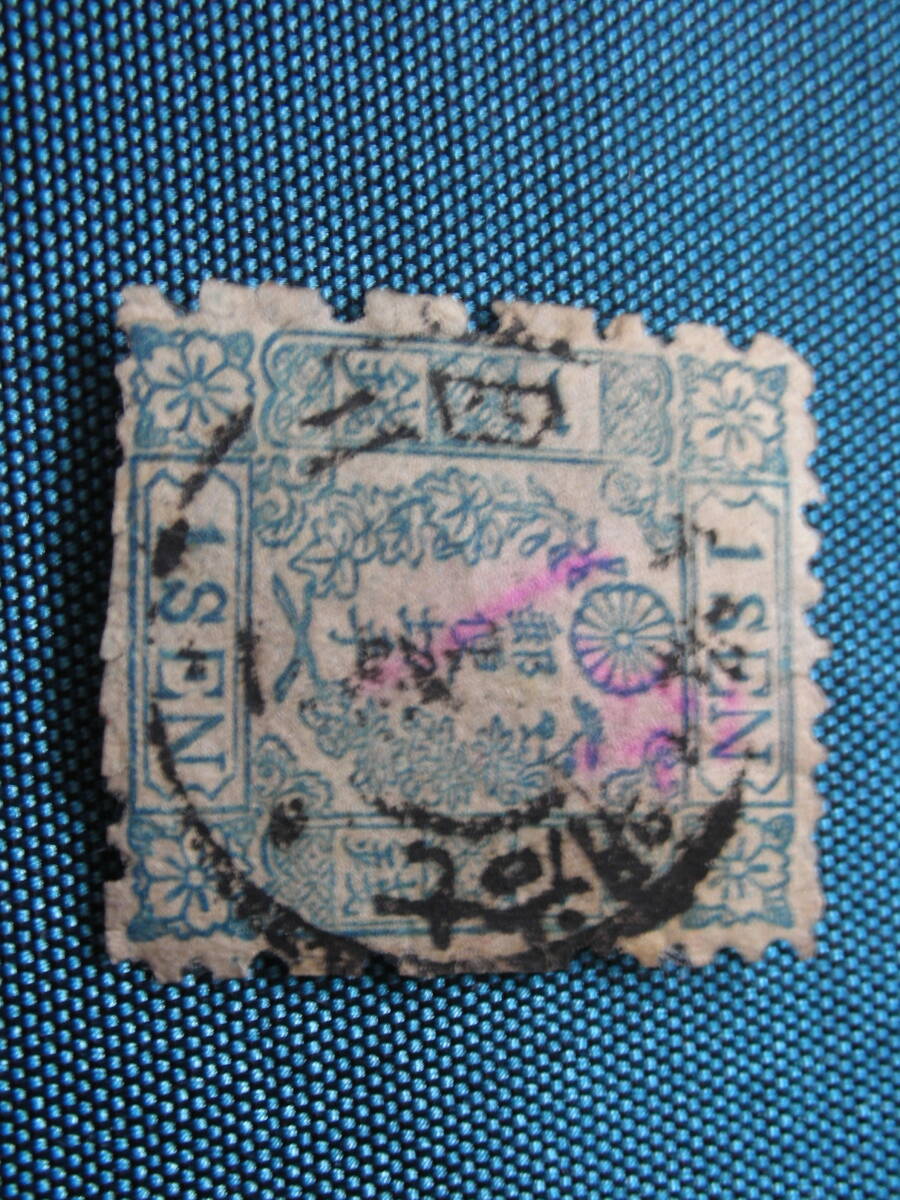 和紙桜1銭 青一 第23版38番 和紙 政府印刷 二重丸印