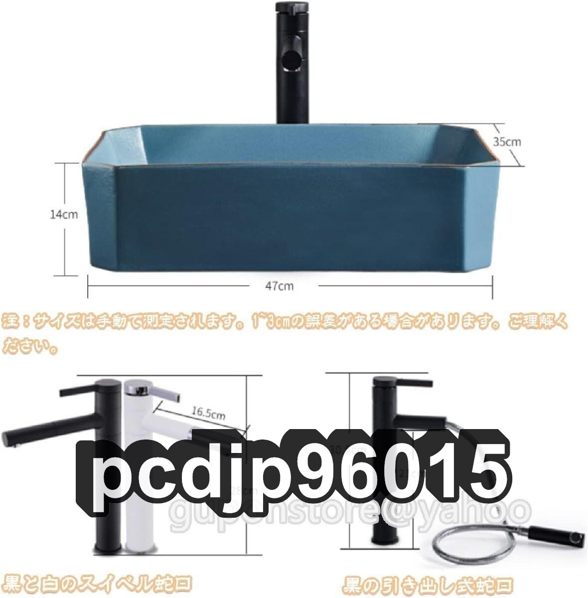 ●状 態:新品未使用 寸法:47 x 35 x 14 cm 重量:10kg 回転式水栓の高さ:28cm 引き出し式水栓高さ:30.5cm 3つの組み合わせ: 1.洗面台本体、ポップアップドレンプラグ。 2.洗面台本体、ポップアップドレンプラグ、回転式蛇口、銅製ドレンパイプ、温水および冷水インレットパイプ、三角バルブ、ドレンパイプ。 ★商品写真はできる限り実物の色に近づけるよう努めておりますがご使用のPCモニター設定や部屋の照明により多少、色の変化が感じられる場合がございます