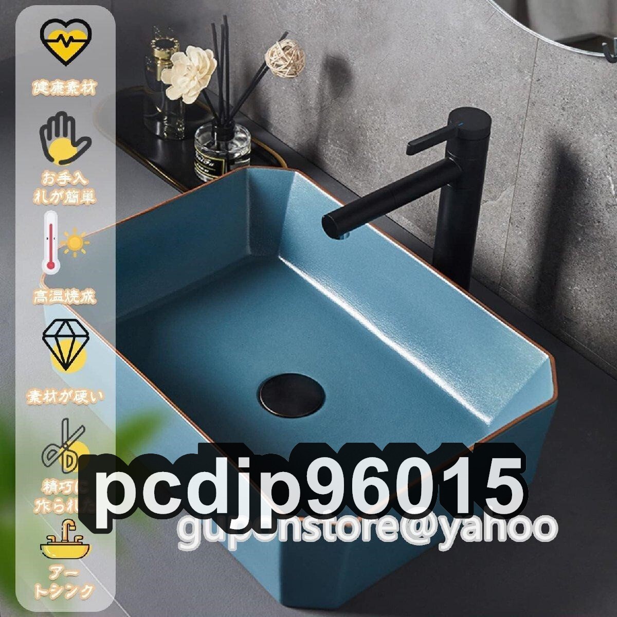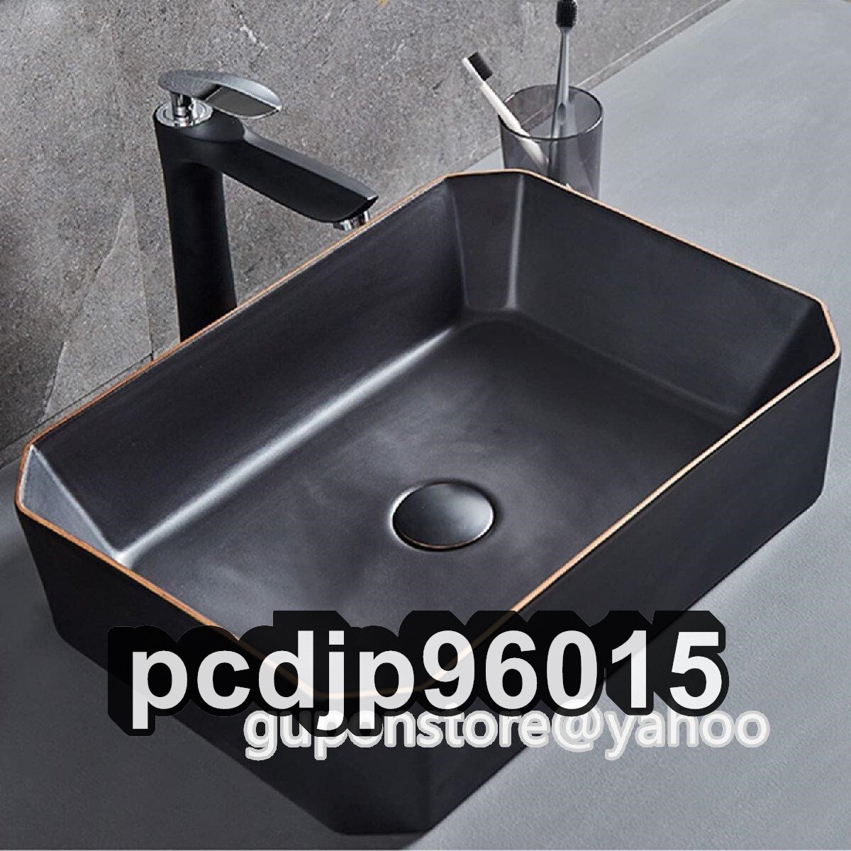 洗面ボウル 陶器製 洗面台 47×35×14cm 手洗いボウルセット 高温焼成 黒 四角型手洗い鉢 洗面ボール お手入れが簡単壊れない