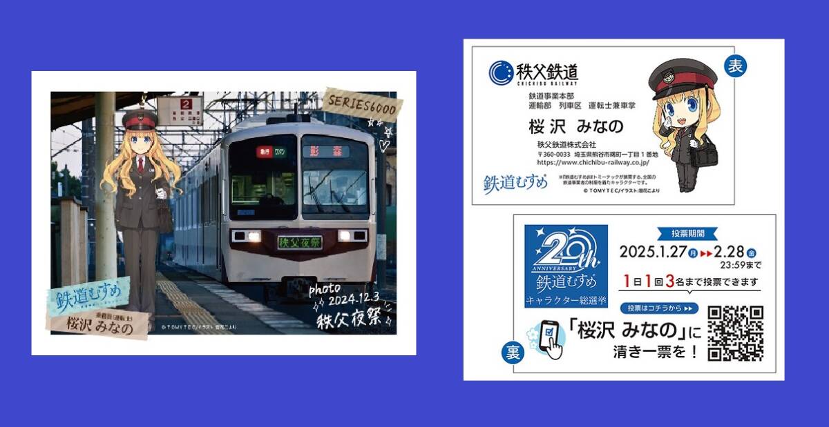 【秩父鉄道☆鉄道むすめ】 桜沢みなの ★ 手書き風ポストカード & 名刺風キャラクター総選挙応援カード/デビュー11周年記念