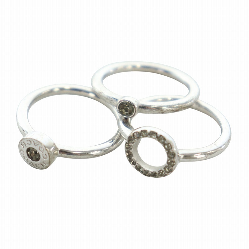 コーチ COACH オープン サークル ハロー リング セット 指輪 3個 アクセサリー ラインストーン ロゴ 12号 シルバー色 F67074