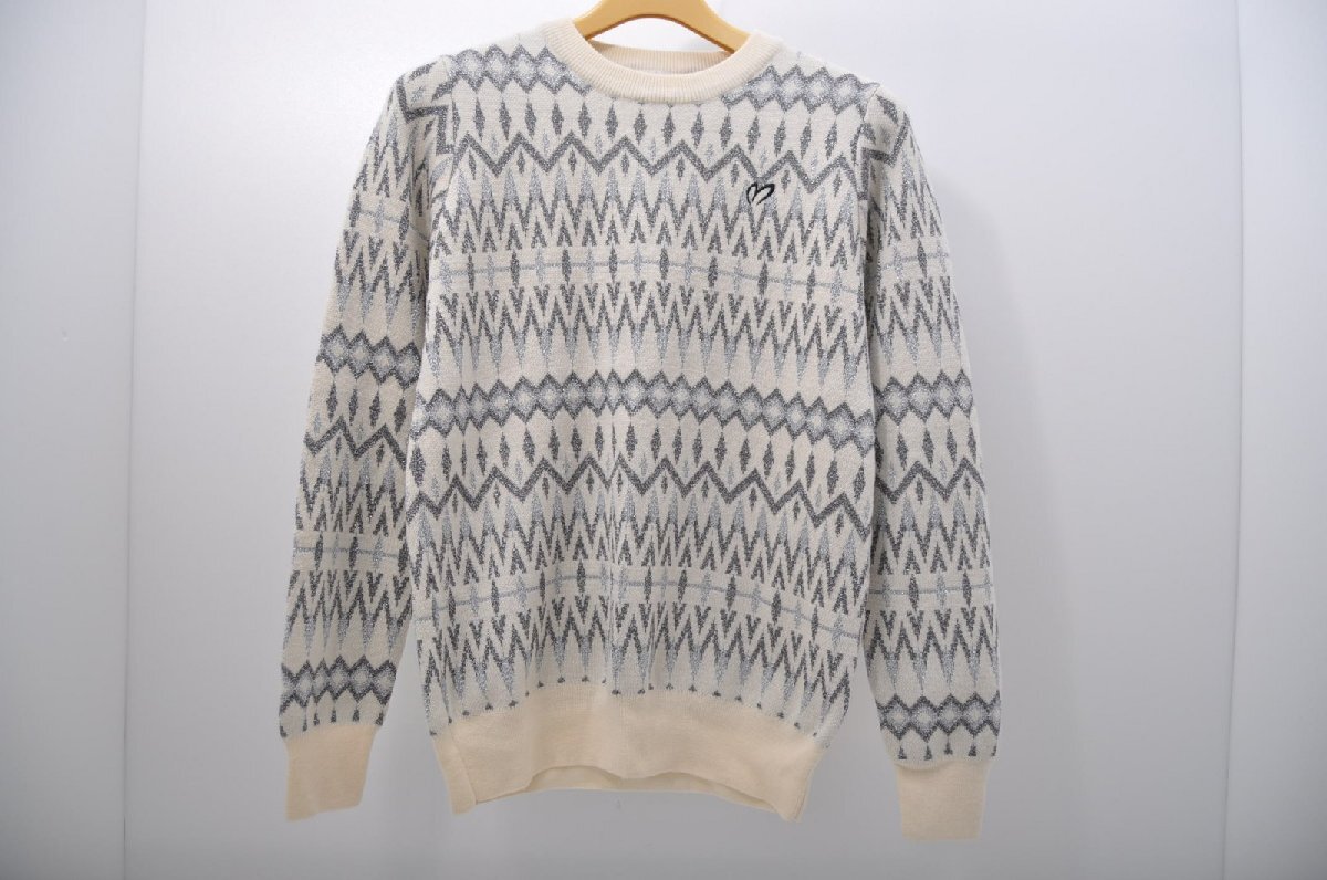 シルバーのラメ糸を織り込んだノルディック調のデザイン