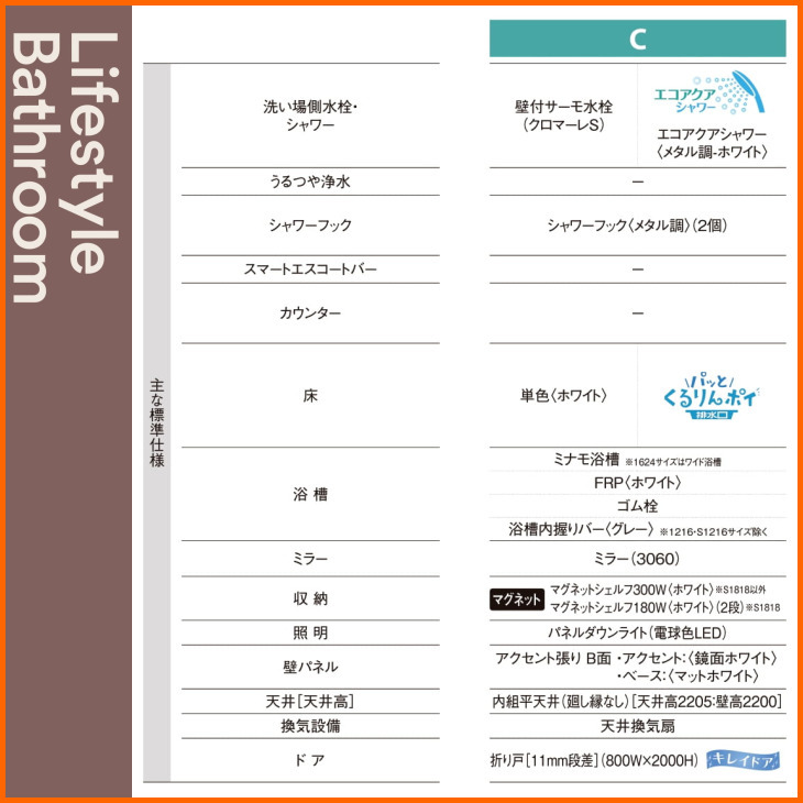 〜リクシル リデア〜 ★入浴スタイルに合わせて、選べる浴槽形状 ミナモ浴槽、ミナモワイド浴槽 他 ★パッとゴミがまとまって、カンタンにポイッ パッとくるりんポイ排水口 ★汚れにくいスッキリデザイン キレイドア ★広がりのあるやさしい光で、浴室空間全体を明るく、心地よく。 パネルダウンライト(LED) ※商品の詳細につきましてはメーカーHP・カタログでご確認願います。 ◆本タイプ以外の型・サイズもございます。 ◆ユニットバスの他、システムキッチン・洗面化粧台・トイレ等の 水廻り商品も取り扱っております。 ◆オプション等で別途お見積りが必要なケースのお問い合わせは、 TEL・FAX・メールにてお気軽にどうぞ! ◆メーカーの定価見積書からもお買い求め頂けます。 事前にご連絡の上、FAXまたはメールにてお送り下さい。 弊社価格の見積書を作成致します。 ◆サイズ違い等、ショップ上に掲載されていない商品をご希望の方は お問い合わせ下さい。 ⇒ クリックで”WEBカタログ”にリンクします |