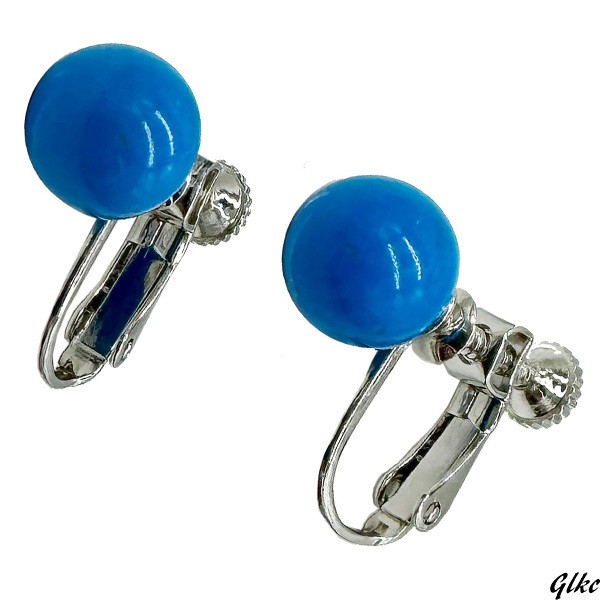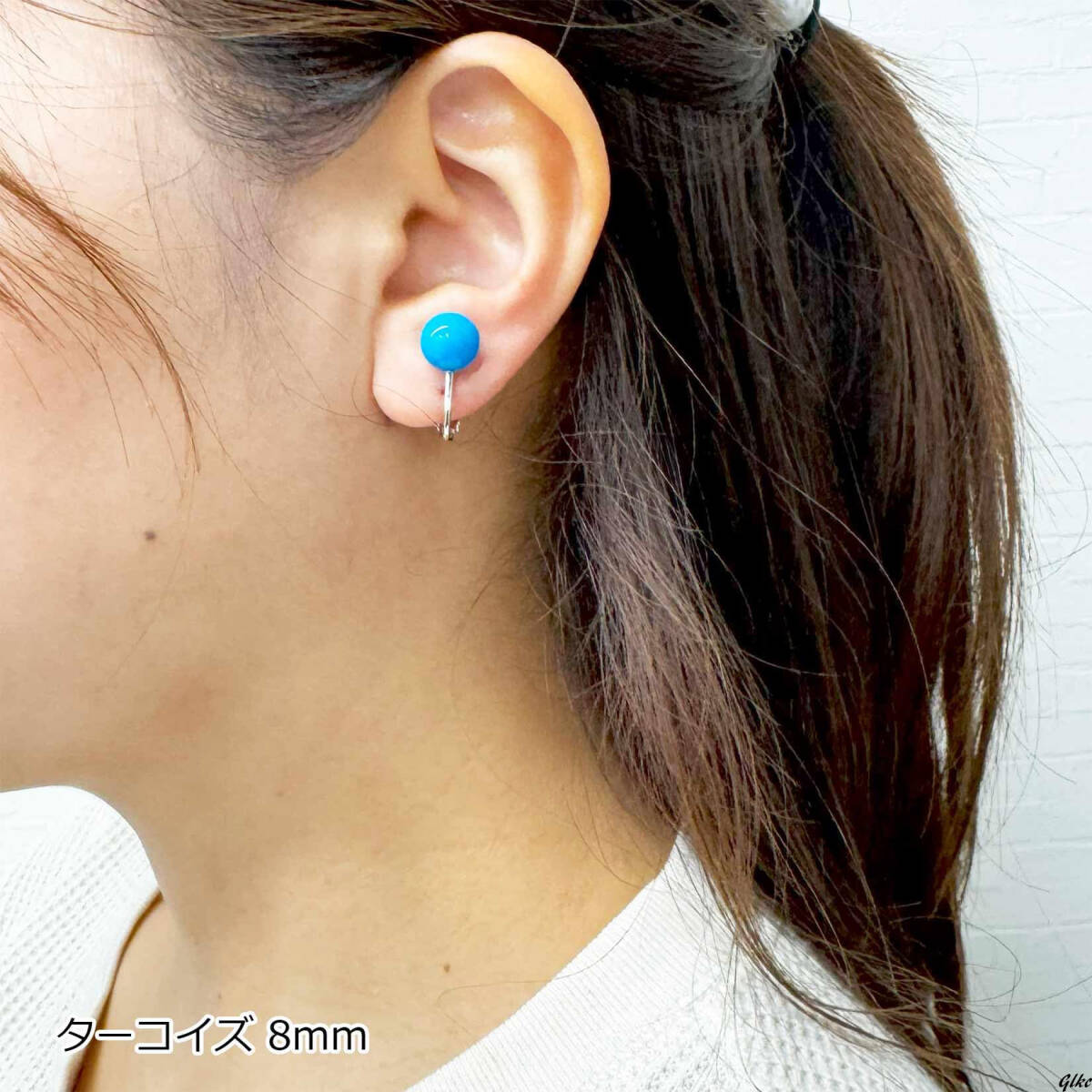 【存在感がありつつも上品なバランスのイヤリング】 ターコイズ ネジバネ式イヤリング 上品なシルバー 日本製 金属アレルギー対応