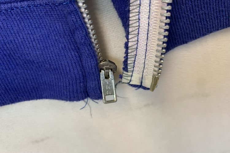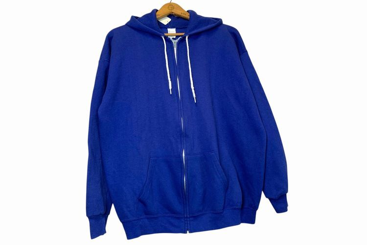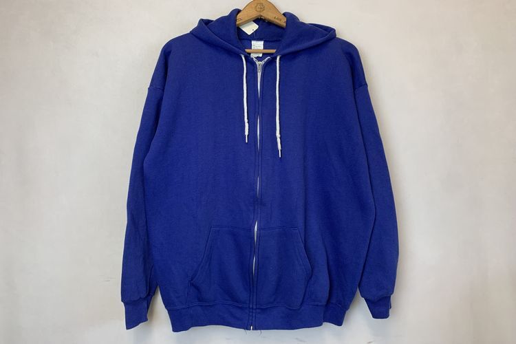 グッドカラースタイル!!ビンテージUSA製フルジップスウェットパーカジャケットXLブルー青無地アメリカ製アメカジストリートr83