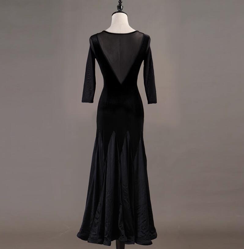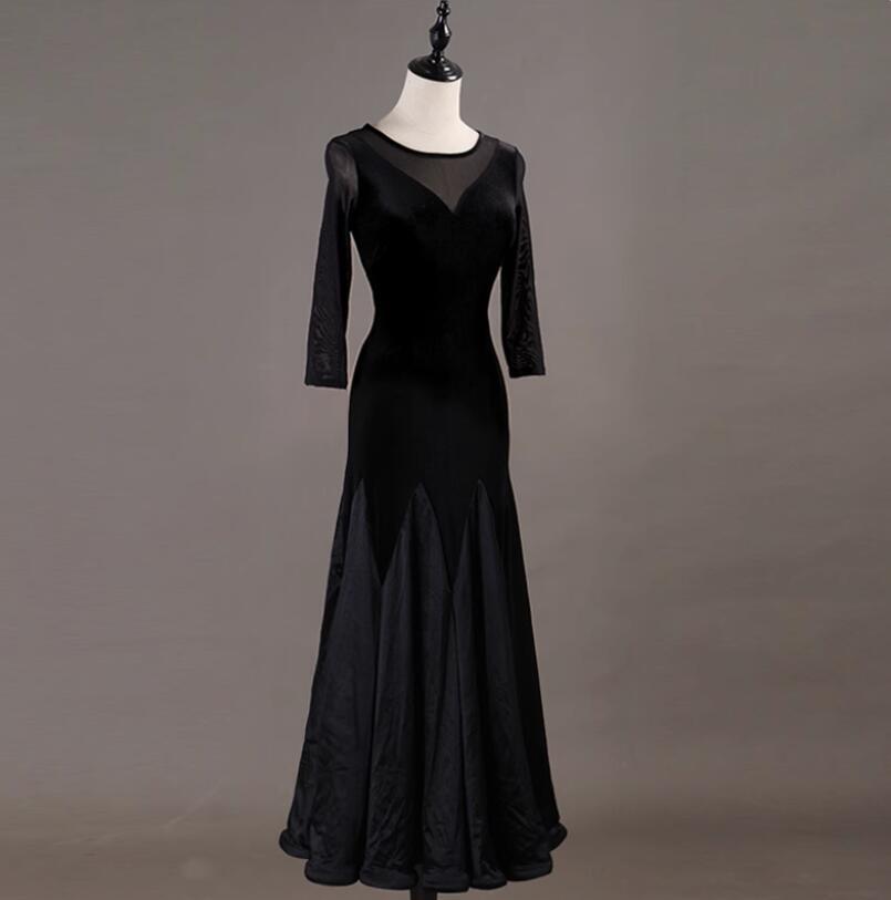 新作 女性社交ダンス衣装 ロングワンピース ダンスドレス シンプル上品ブラック’ サイズS~XXL 調整可能