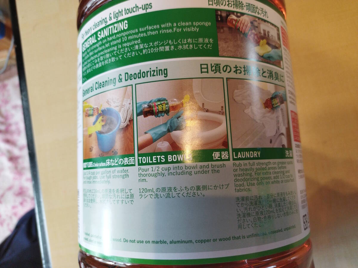 多用途洗剤で、これ1本でキッチン、浴槽、トイレ、洗濯にもご利用いただけるとのこと。しかも、60倍希釈で使うので原液が少量でもたくさん使えます(頑固な汚れには原液を使うことも)。