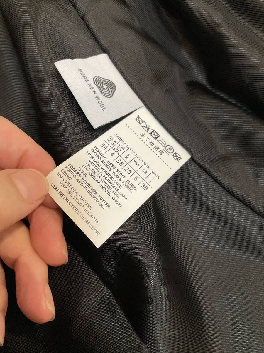 綺麗なシルエットのウールコートです。ボタンも黒で様々なシーンで活躍すると思います!サイズは38で、身幅47肩幅38着丈104袖丈59cmほどです。よろしくお願いします!