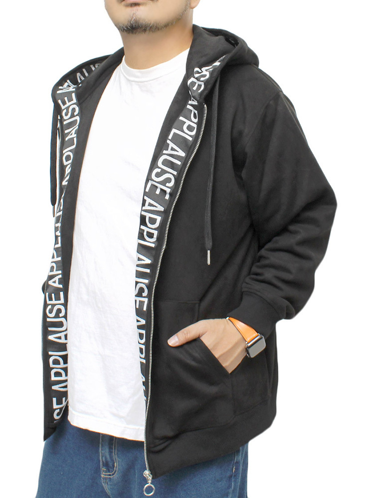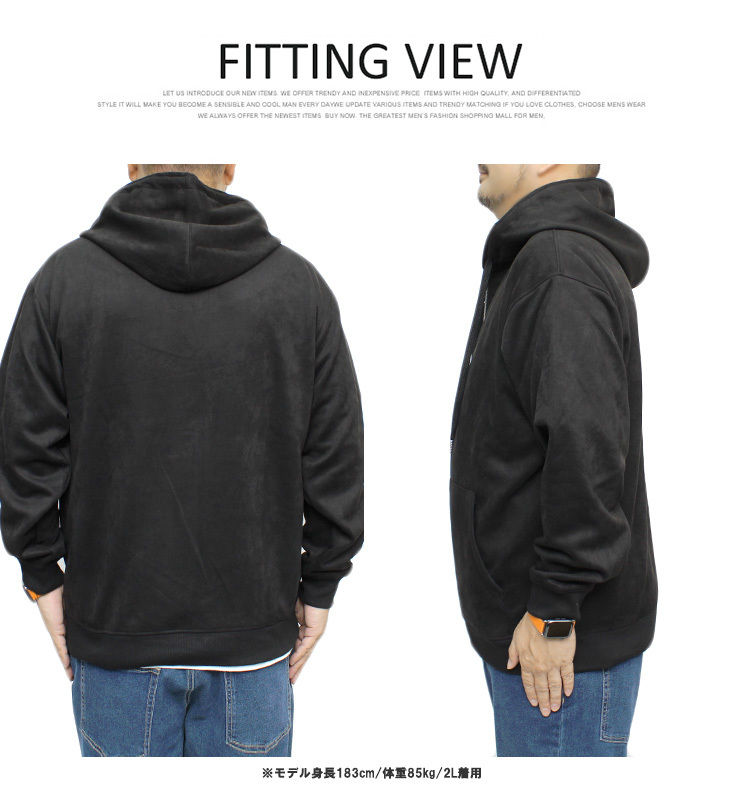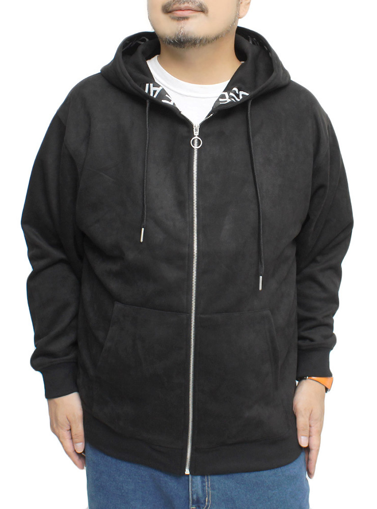| 商品名 | 【新品】 3L ブラック パーカー メンズ 大きいサイズ フェイクスウェード フード裏 プリント ジップアップ スウェット |