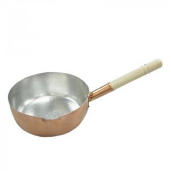 この鍋一つで、炒めたりそのまま煮たりと大変重宝するお鍋です。銅は熱伝導に大変優れているため、鍋全体に平均して熱が伝わり、じっくり煮込む料理に適しています。鱗のように表面を覆う模様は、銅板を金槌で叩いて成形した跡。職人が一つ一つ手作業で作り出した鍋ですので、一生ものの料理道具としてお使いいただけます!! ※こちらの商品は手作業で製作しているため、若干のサイズ誤差が生じる場合がございます。予めご了承ください。 【ご使用の前に】 水洗いをして、水を鍋の7~8分入れて沸騰させてください。 【ご使用後のお手入れ】 ◆内側 水洗いで調理の汚れ(焦げ付いた野菜など)を落とすだけで十分です。 洗剤を使う場合、柔らかいスポンジで洗ってください。 汚れの気になる場合は、クレンザーで洗ってもかまいませんが、錫引きされた表面は柔らかいので傷がつき、いずれ錫が削られ鍋の地肌がでてきます。 その場合、食品が鍋に直接接しても無害です。 ◆外側 水洗いをし、水気を取り除いたのち、柔らかい布で乾拭きしてください。 汚れの気になる場合は、クレンザーで磨いても構いません。銅の光沢は戻りますが、空気に触れているだけでも銅の表面は変色します。 【ご注意】 ●絶対に空焚きしないでください。強火で空焚きすると内側の錫が溶けて固まることがあります。 ●内側はタワシや金属製の器具をご使用にならないでください。 ●鍋の中に料理を一昼夜入れたままにしますと、料理の表面に薄青い銅化合物が出来ることがありますので、残ったお料理は別の器に移して保存してください。これは、銅イオンが微量に溶け反応した結果ですが、衛生的にみても心配はありません。 【緑青について】 湿り気の多い所に放置しておくと銅の表面に銅の錆「緑青」が出ます。 「緑青」は長い間、有毒と教えられてきましたが、厚生省の研究により無害と認定されました。(社団法人日本銅センター資料による) しばらく使わずにいたら鍋の内側に「緑青」が出てしまった、というような場合でも、普通に汚れを落とすのと同じ感覚で洗い落してください。 そのままご使用になれます。 |