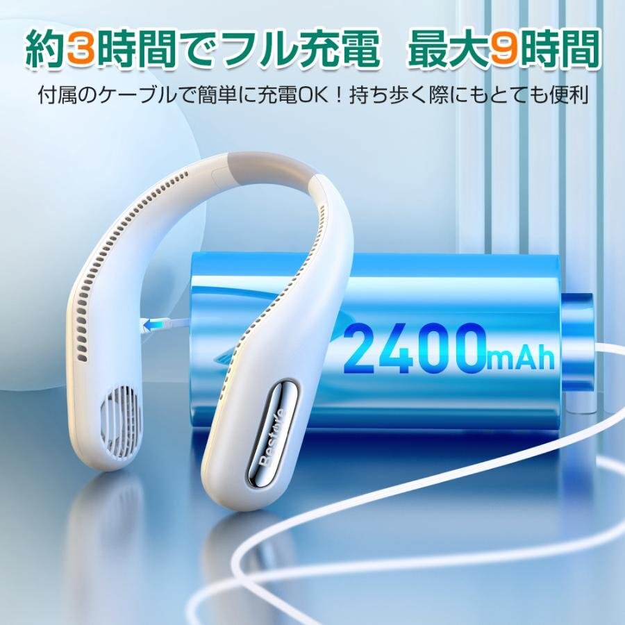 首掛け扇風機 2025 扇風機 ネッククーラー 携帯扇風機 羽なし USB充電式 首掛けファン 熱中症 マスク蒸れ ひんやり音 色:ホワイト