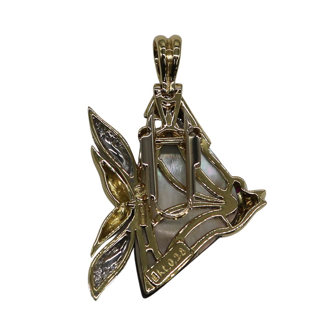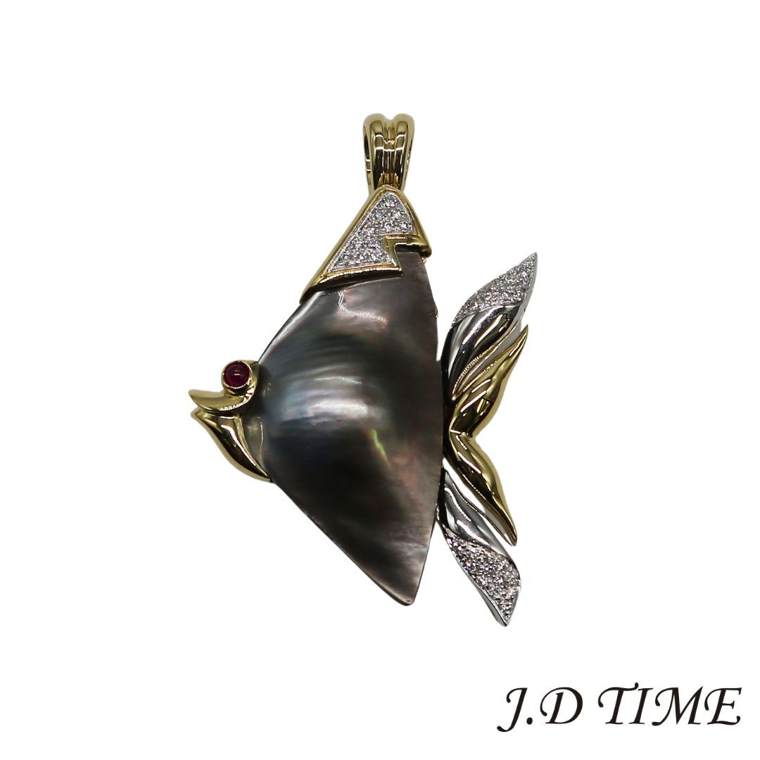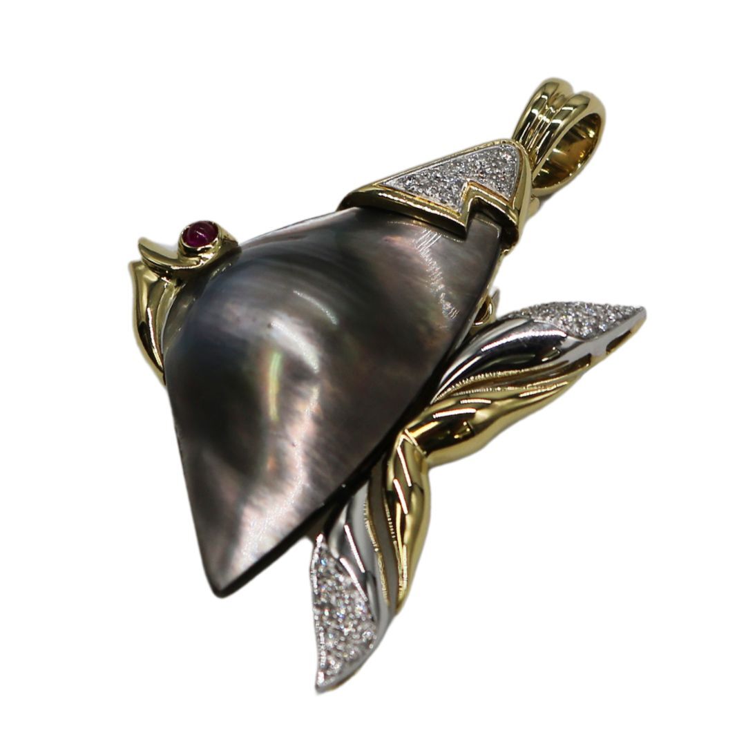 K18/黒チョウ貝 フィッシュ ペンダントトップ D0.28ct レディース【未使用品】(JD-31999)