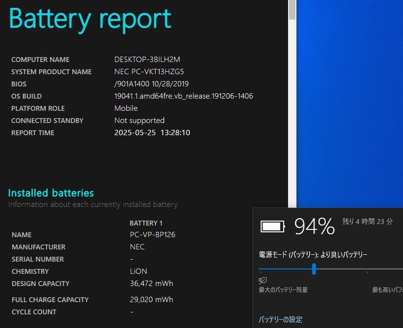 バッテリー 満タン後最大残量(実際の稼働を保証するものではありません)