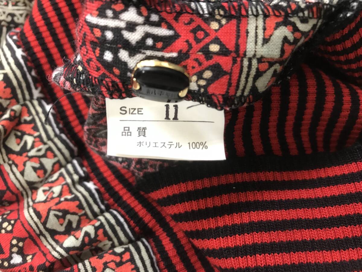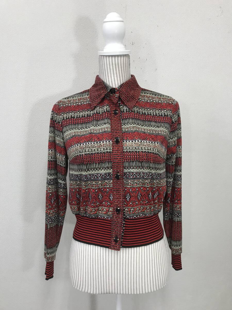 3955【 昭和レトロ ビンテージ Ladies knit 】長袖 襟付き カーディガン  サイズ:11  色:レッド柄入り