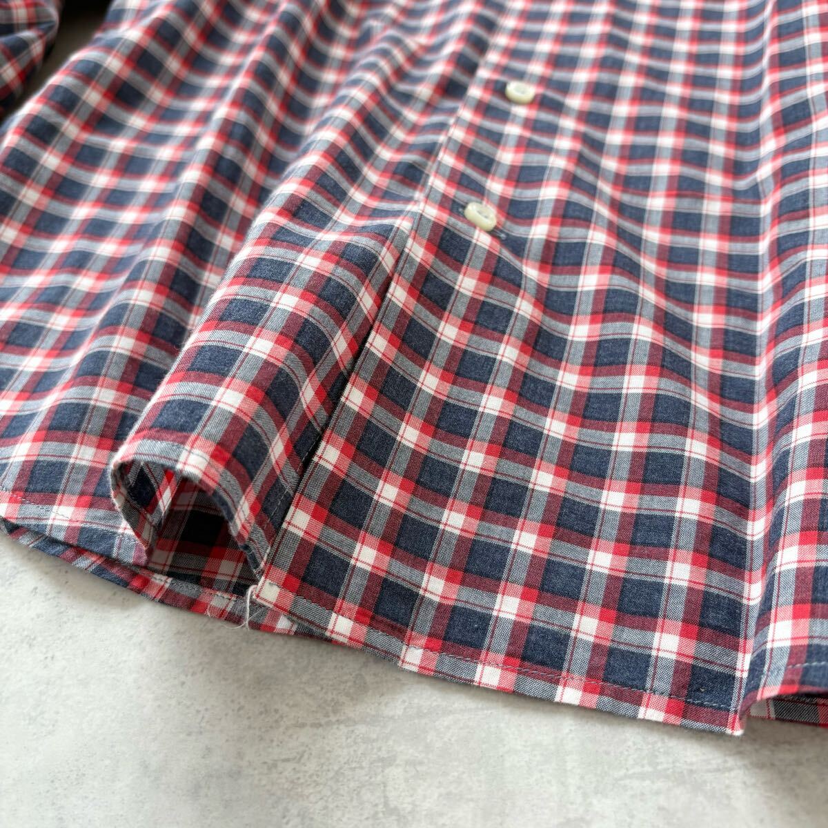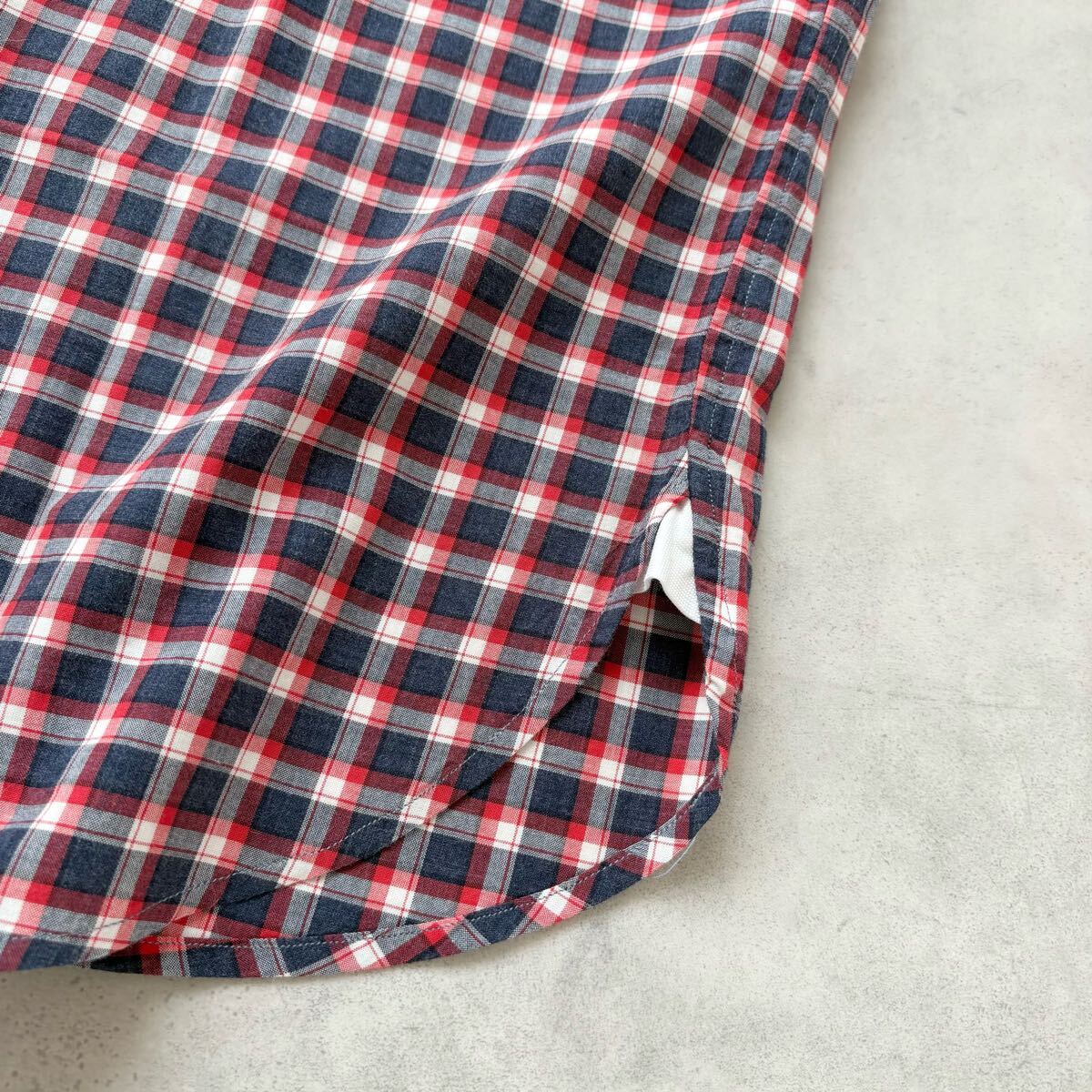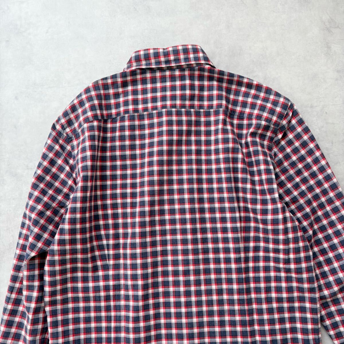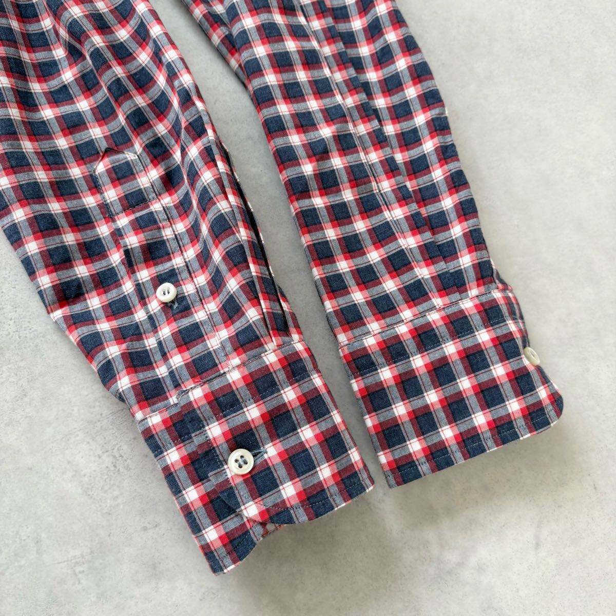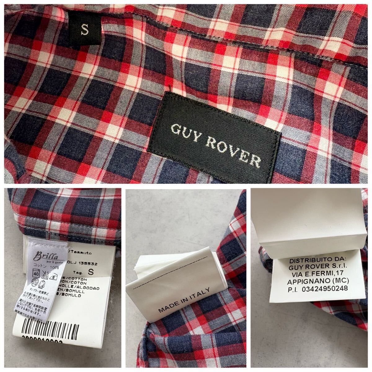 イタリア製 GUY ROVER ギローバー 長袖 コットン ホリゾンタルカラー チェック シャツ 裾ガゼット メンズ(S) 紺 赤 / a-310