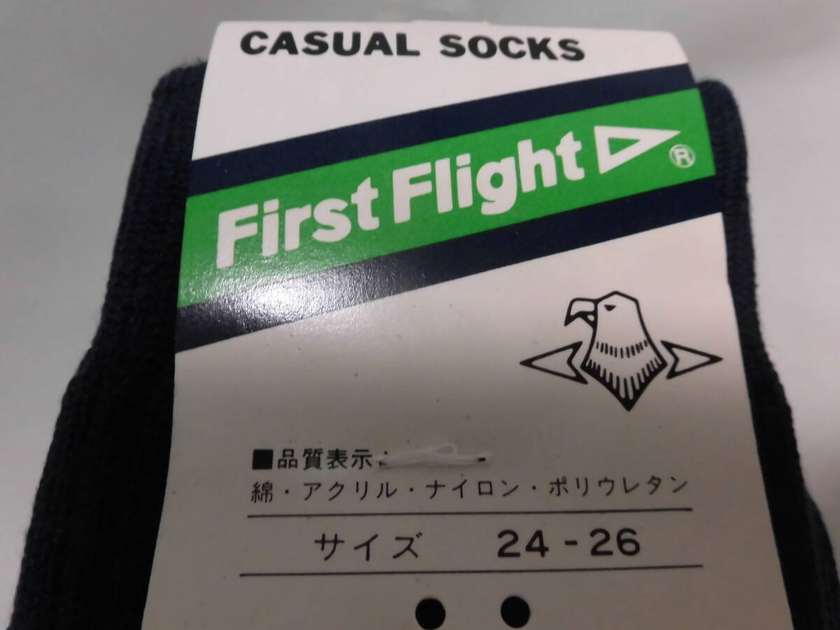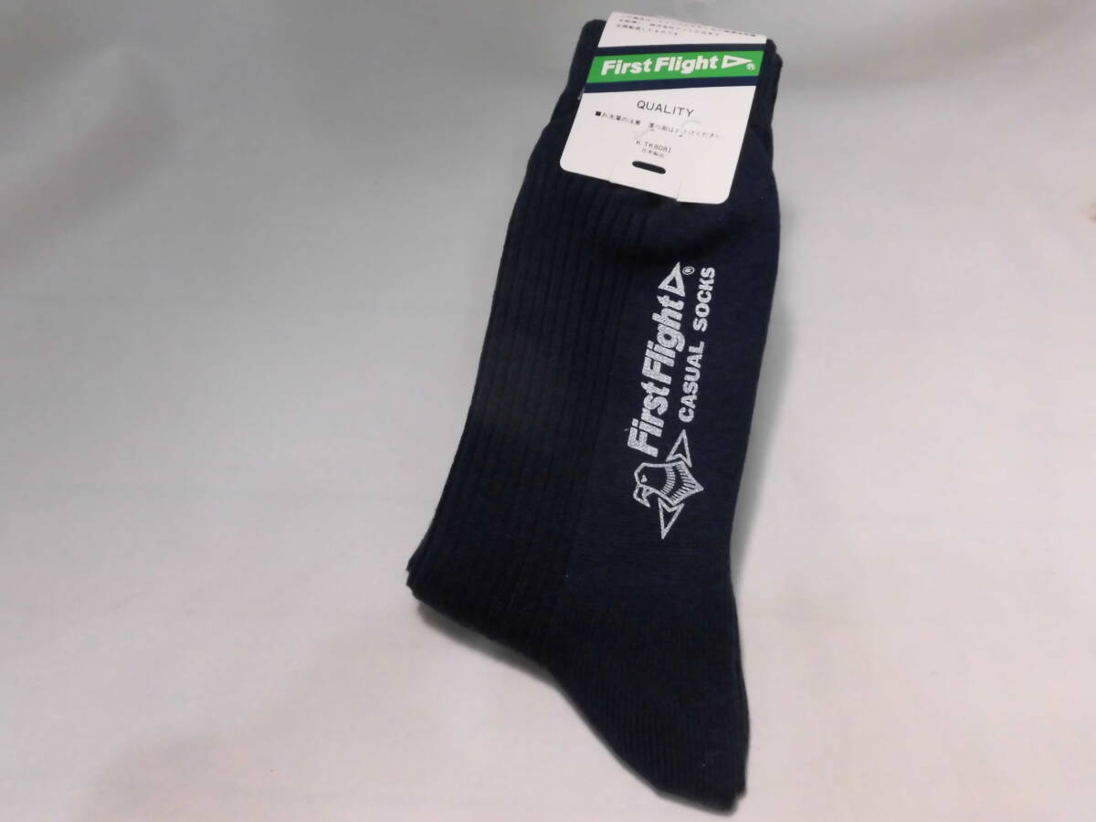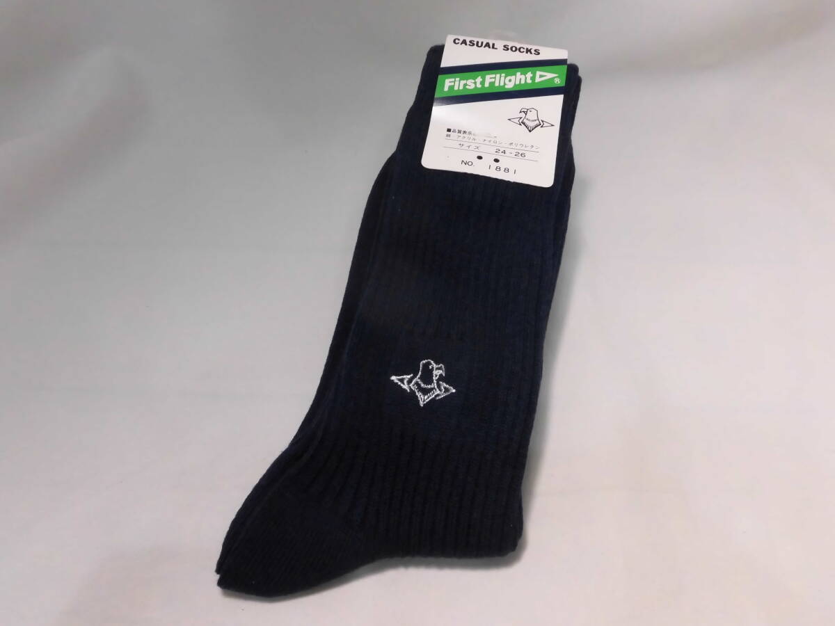 レトロ 日本製 First Flight ワンポイント 紳士用靴下 カジュアル メンズソックス リブ ハイゲージ 紺 ネイビー 4122