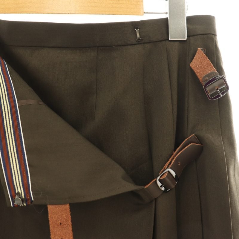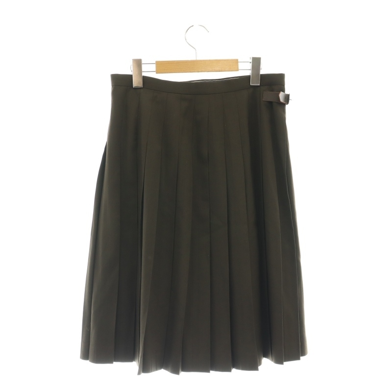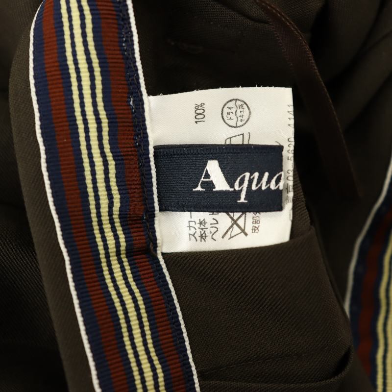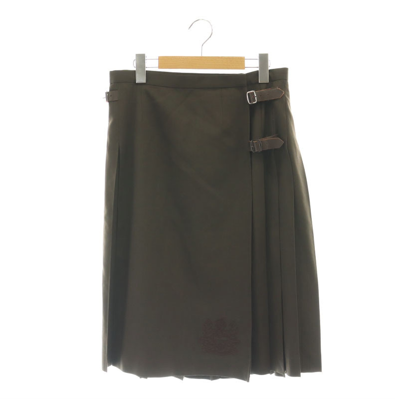 アクアスキュータム AQUASCUTUM プリーツラップスカート 膝丈 刺繍 ウール 8F ブラウン /DO ■OS レディース
