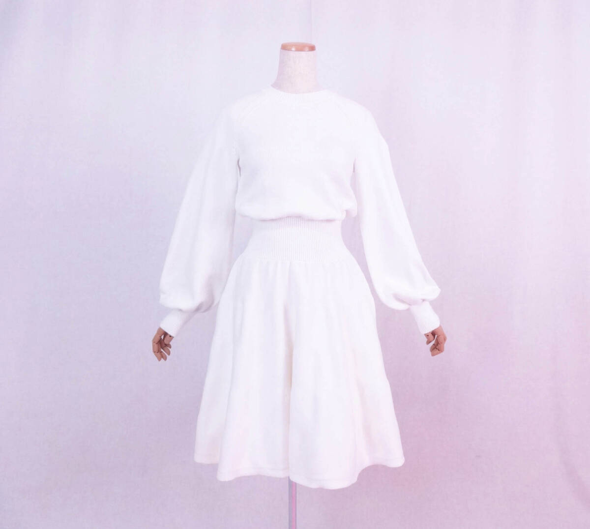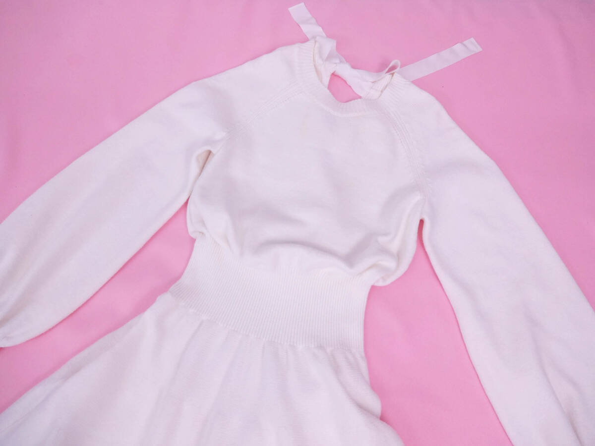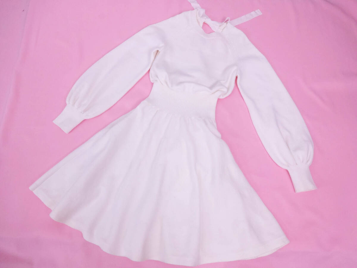 キュート♪ ADEAM アディアム ふんわりシルエットニットワンピース バックリボン ホワイト 定価107.800円