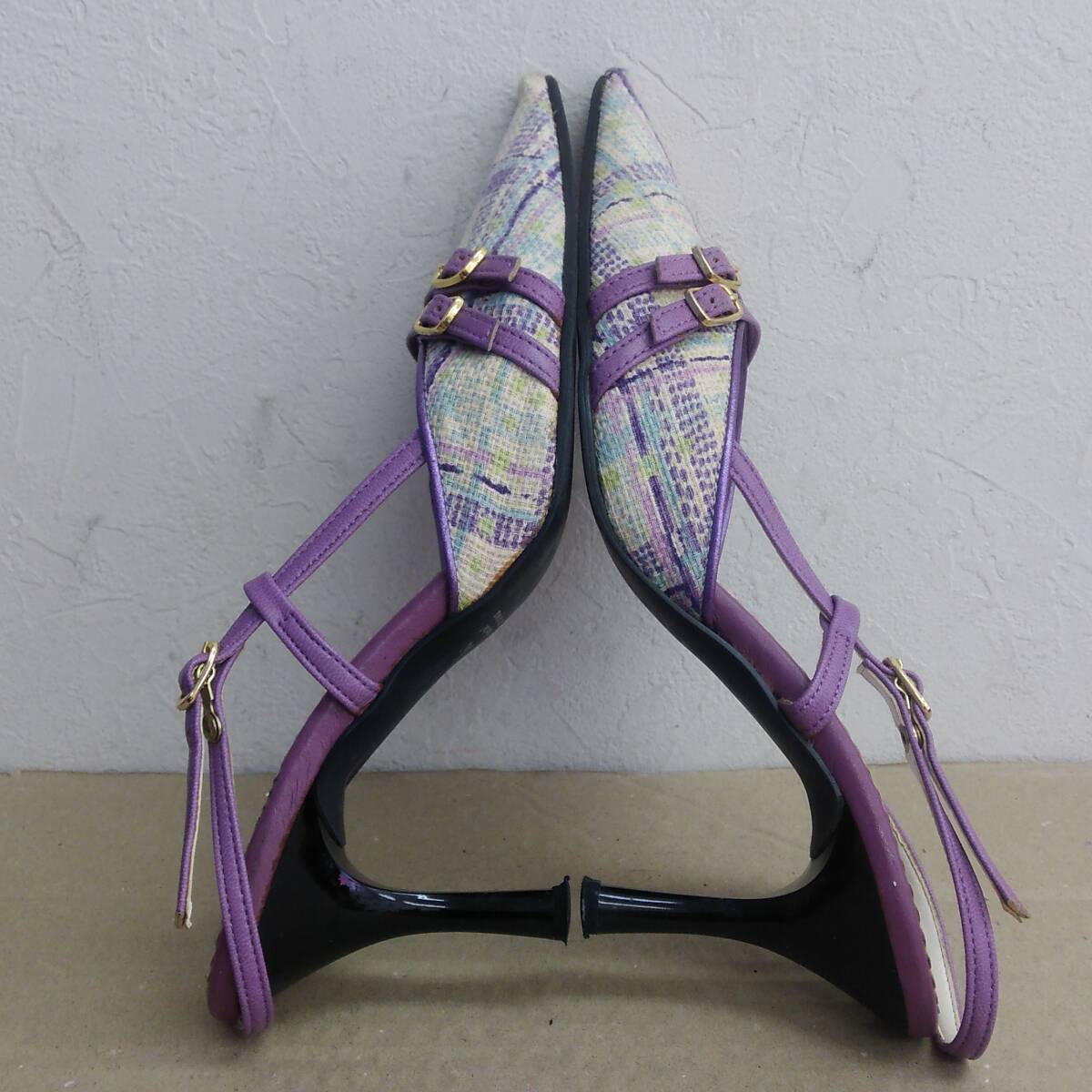 ◎サイズ 商品サイズ: M ※出品カテゴリーにMサイズという 選択肢が無かったため、23cmを 選んで出品しています 外寸サイズ 全長:約 25cm 横幅:約 8cm ヒール高さ:約 7cm 重量:約 155.7g(左)・153.6g(右) ※多少誤差は生じると思います。 -------------- ◎状態 擦れ・傷・汚れ:あり つま先に擦れ、汚れあり(画像7) インソールに凹み、汚れあり(画像8) ヒール底面にすり減りあり(画像9) -------------- 中古の靴の出品です。使用した物に なりますので、擦れや汚れ、折れ痕 など、少なからず使用感は見られ ます。履くことは出来るものを出品は しておりますが、あくまでも中古品で あるということをご了承ください。 簡単に清掃をしておりますが、気に なる方は、今一度洗ってからお使い くださいますようお願い致します。 ヒール部分に関しては、出品前に 確認をしておりますが、経年によって 劣化をして折れやすくなっているかも しれません。その点、ご了承頂いた 上でご入札くださいますようお願い 致します。