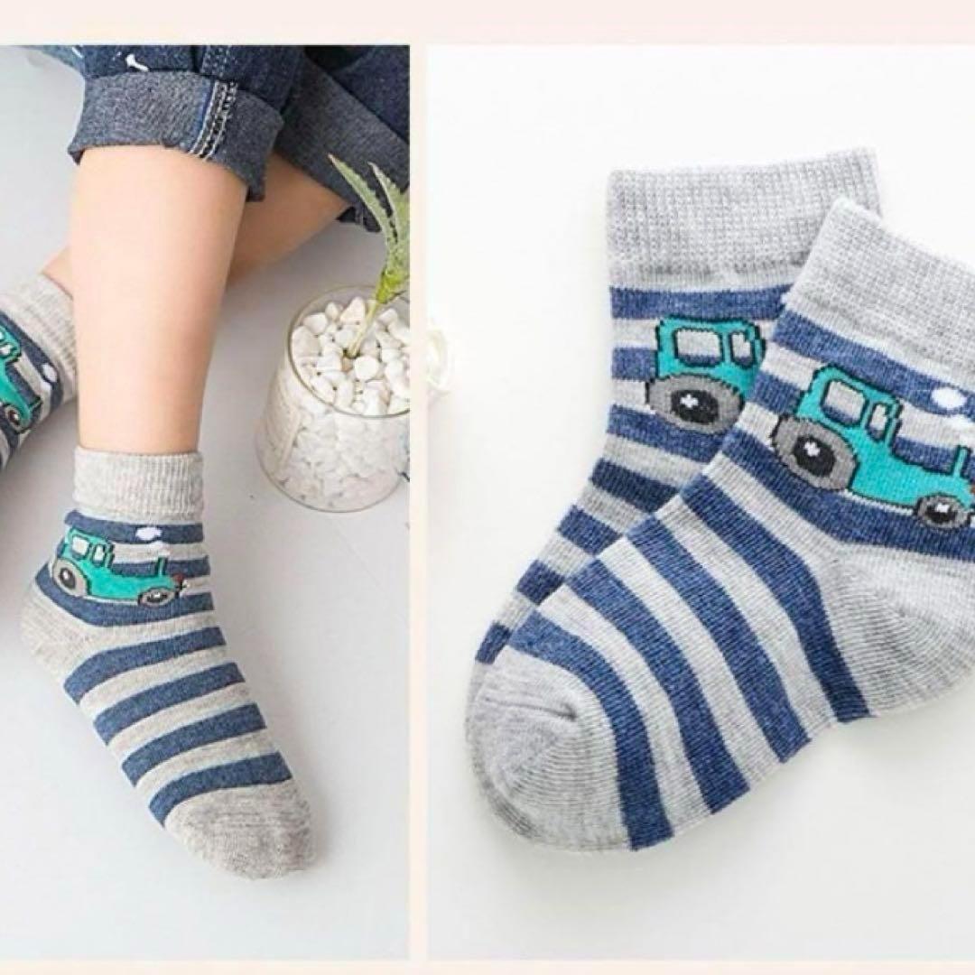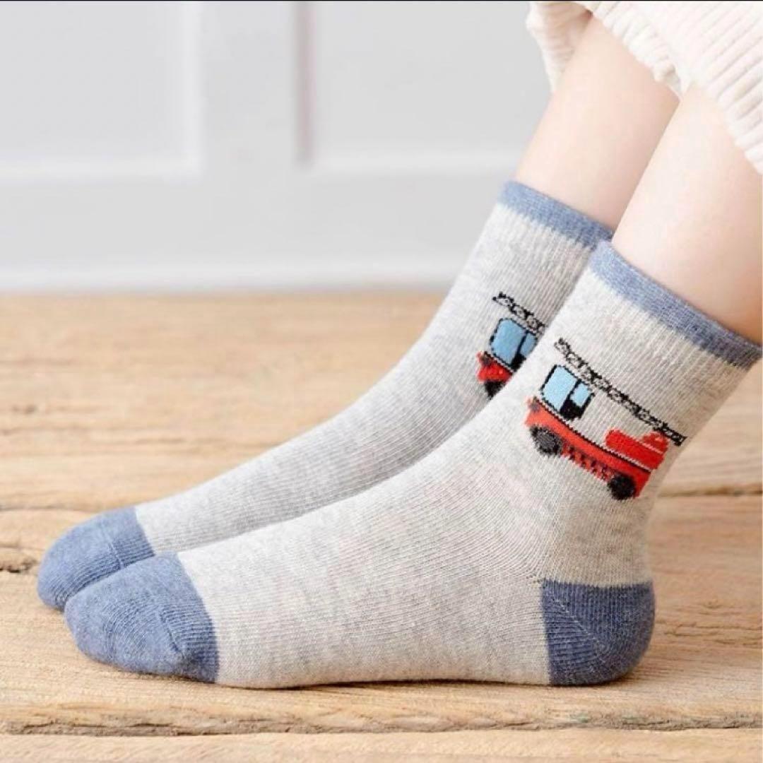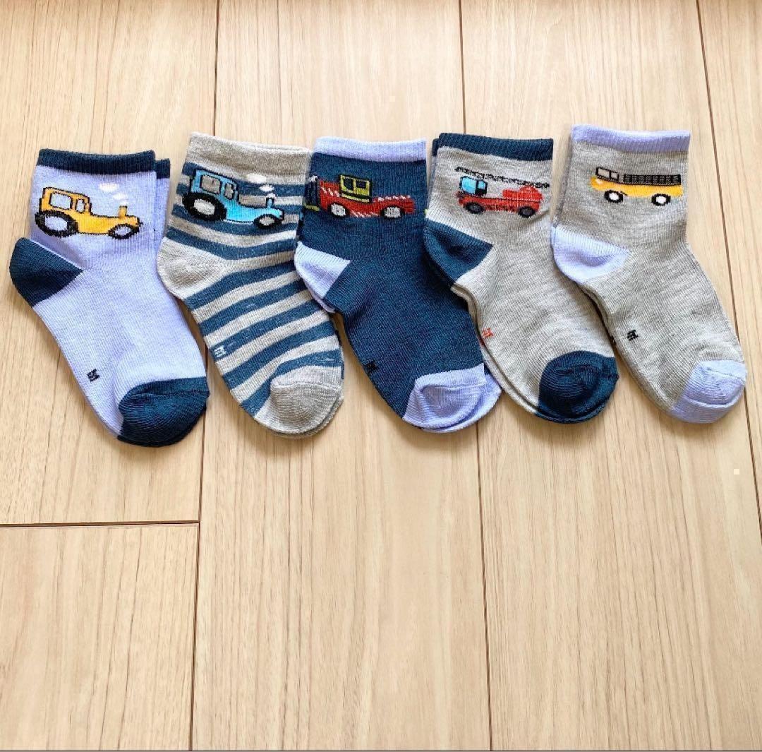 キッズ靴下 靴下 のりもの はたらくくるま カラフル 5点 セット 男の子 キッズ13 14 15 16 17 水色 男の子 子供 男児 クルー丈
