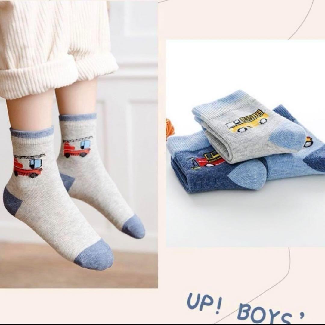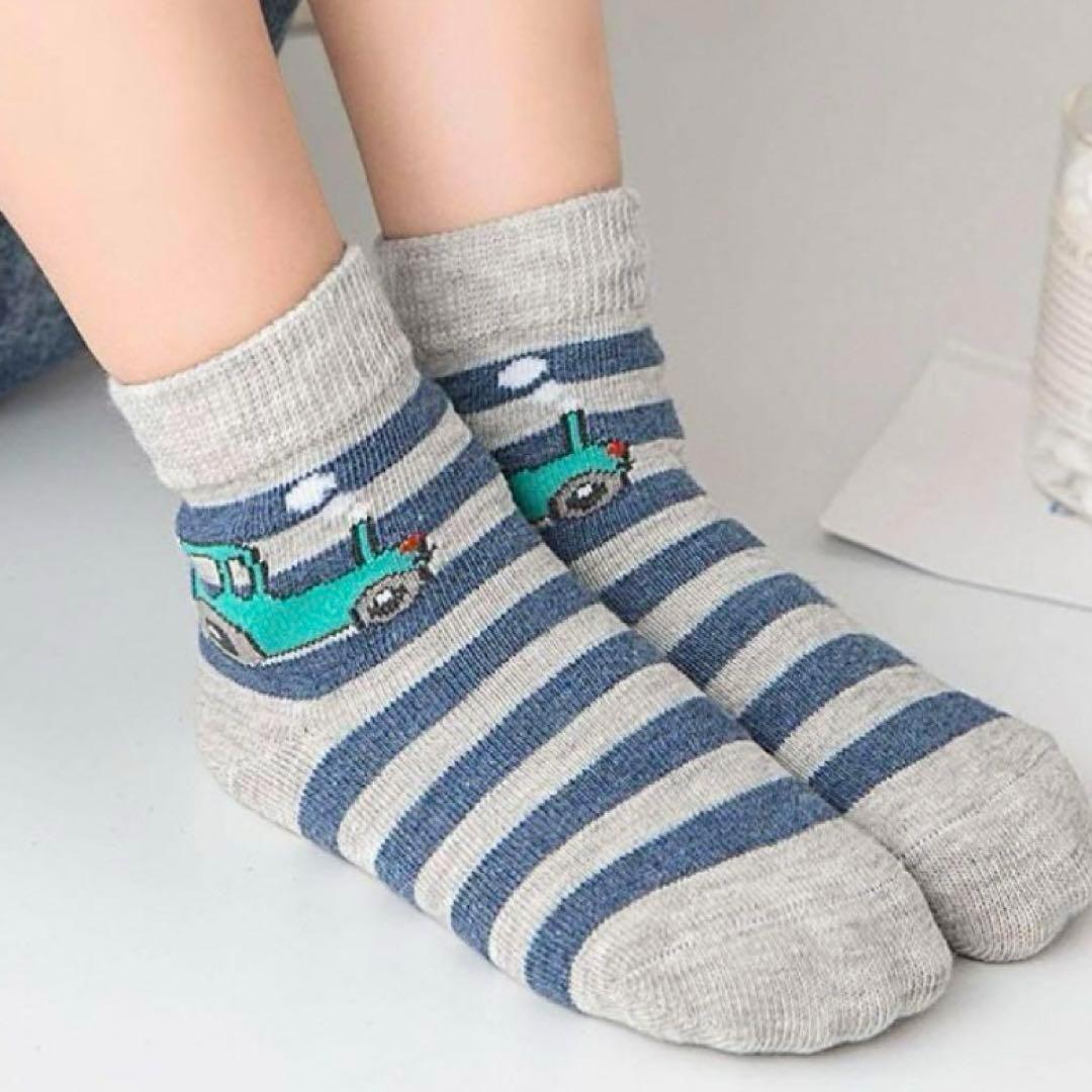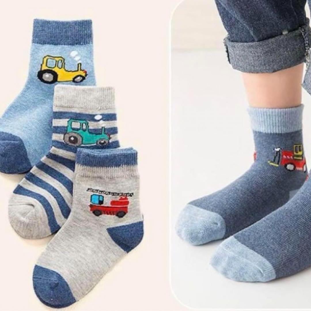 キッズ靴下 靴下 のりもの はたらくくるま カラフル 5点 セット 男の子 キッズ13 14 15 16 17 水色 男の子 子供 男児 クルー丈