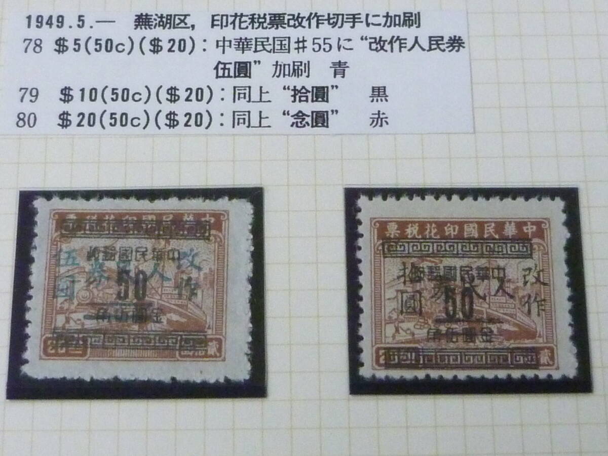 鉄道切手№28 中国解放区 1949年 華東区 晥南 香港楊#EC486-89 蕉湖手蓋 改作人民券票 計4種 未使用NH~OH・VF ※説明欄必読