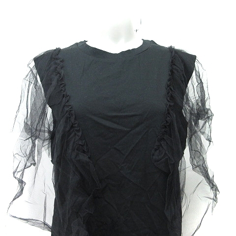 クラシカルエルフ CLASSICAL ELF Tシャツワンピース ミニ 切替 チュール XL 黒 ブラック /YI レディース