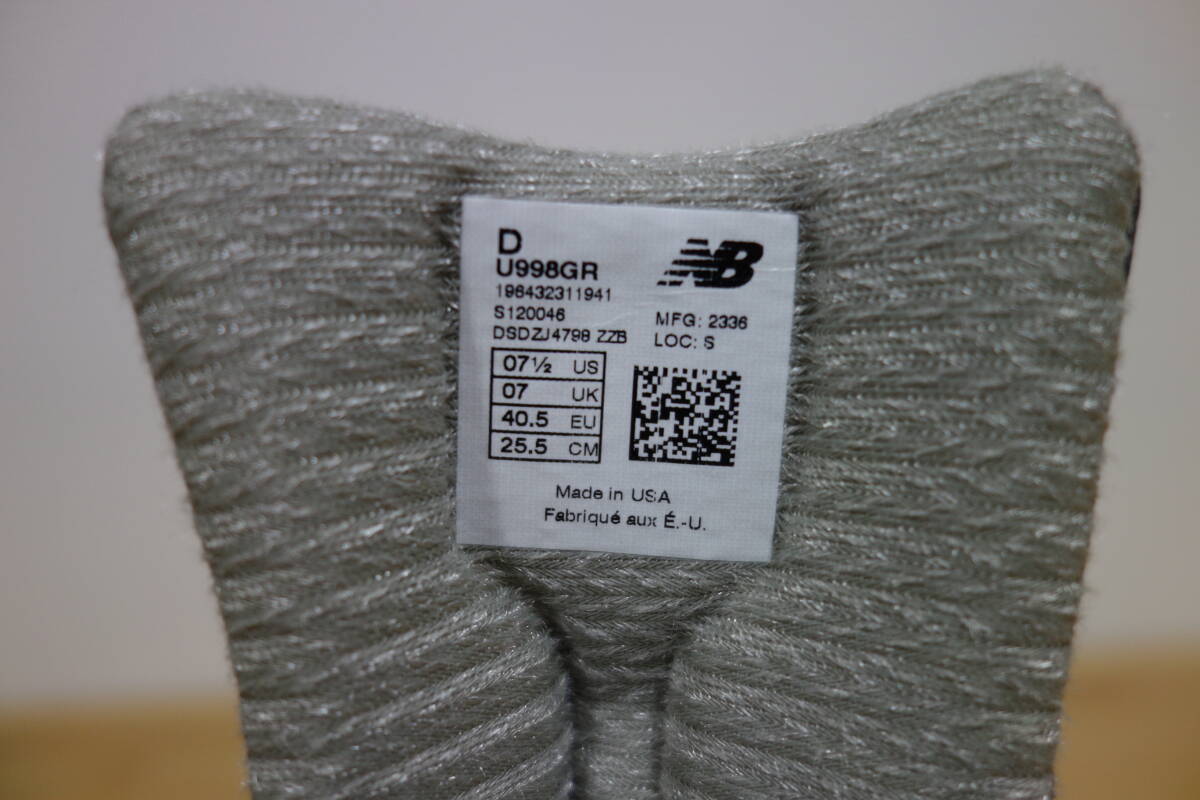 New Balance U998GRです。USA製の未使用品で、サイズは25.5cm(US7.5)です。写真に写るものが全てです。質問などございましたらお気軽にお問い合わせください。よろしくお願いいたします。