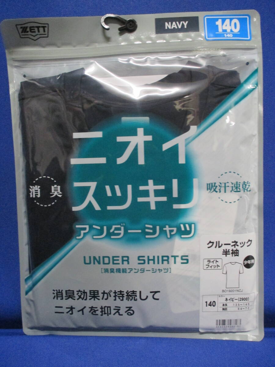 送料無料◆半袖◆140㎝◆ネイビー◆アンダーシャツ◆ゼット◆即納◆消臭◆ZETT◆BO19201NCJ◆野球◆ジュニア◆吸汗速乾◆伸びる