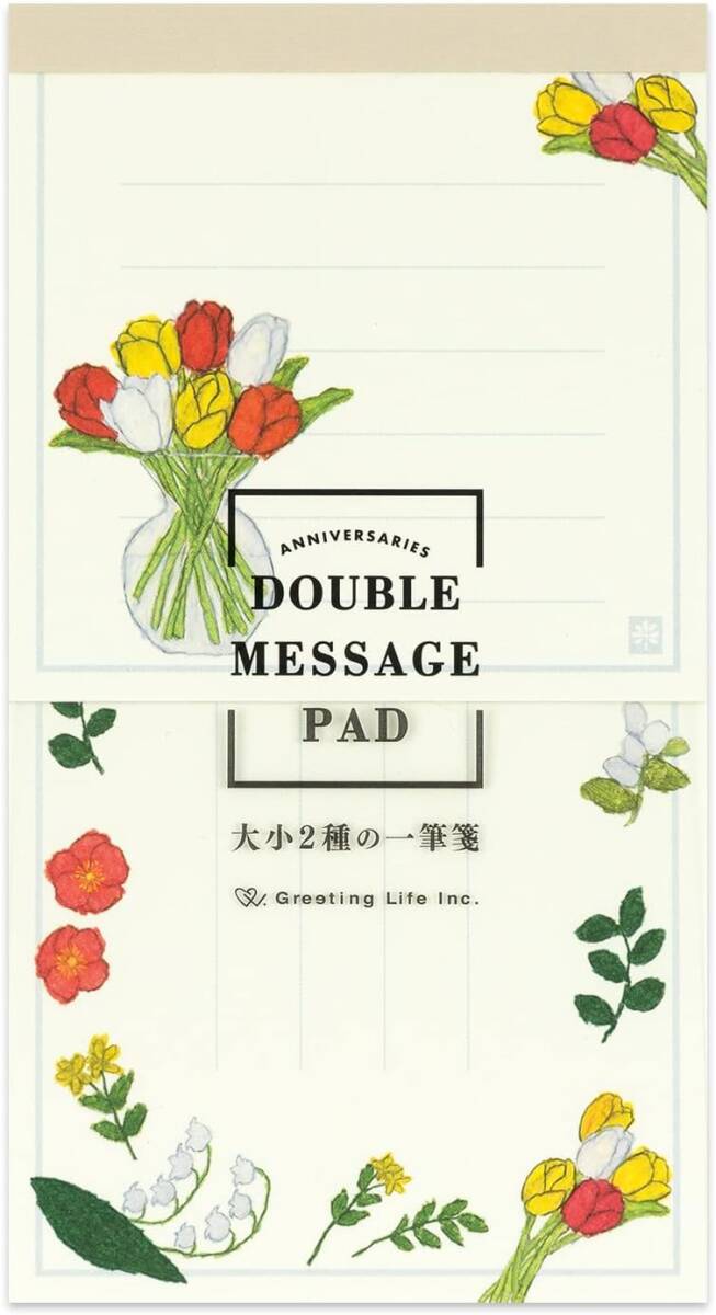 【即決】★一筆箋 グリーティングライフ★大小2種 花柄 2サイズ メッセージ 各15枚 30枚入り アニバーサリー チューリップ // YZS-384