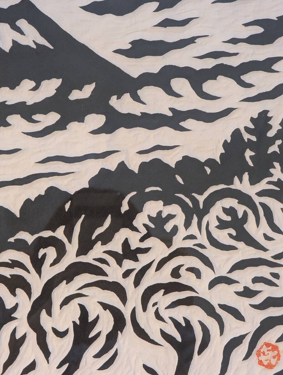 笹島は、伝統的なバレンを使用せず、版木に紙を当てて上から押す「拓刷り」技法を確立しました。
