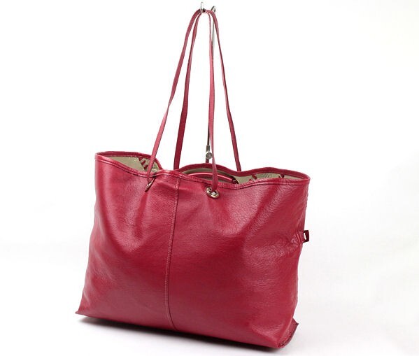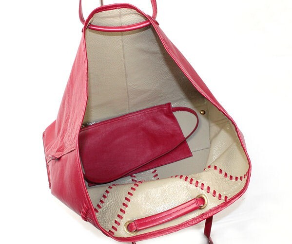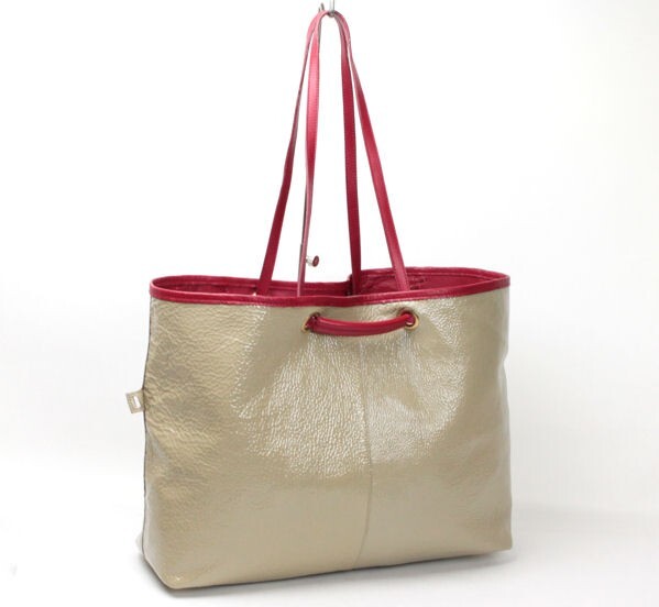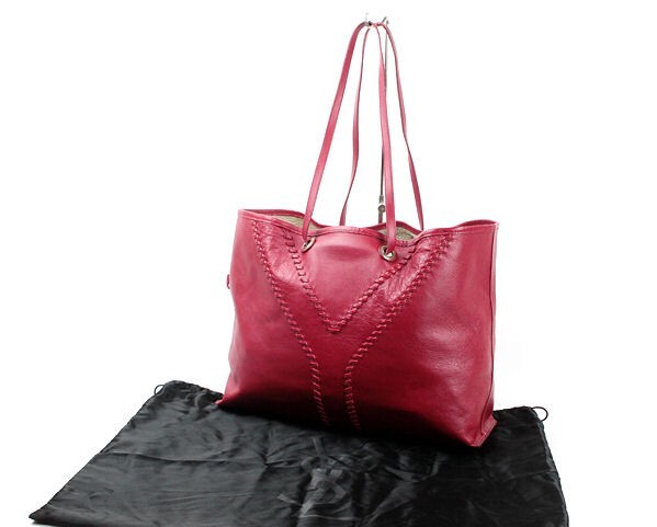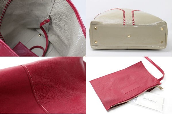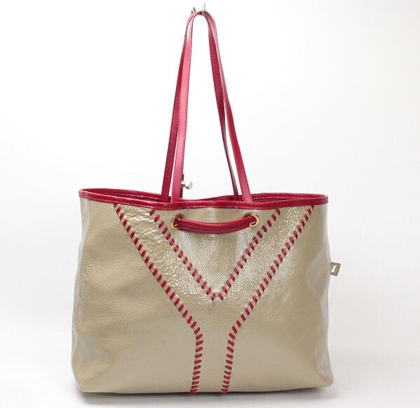 イヴサンローラン リバーシブル トートバッグ 赤×グレージュ 80776