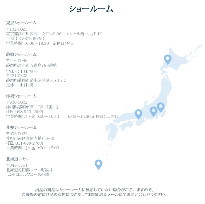 ● 東京、静岡、沖縄、札幌、ニセコにショールームを開設しております。