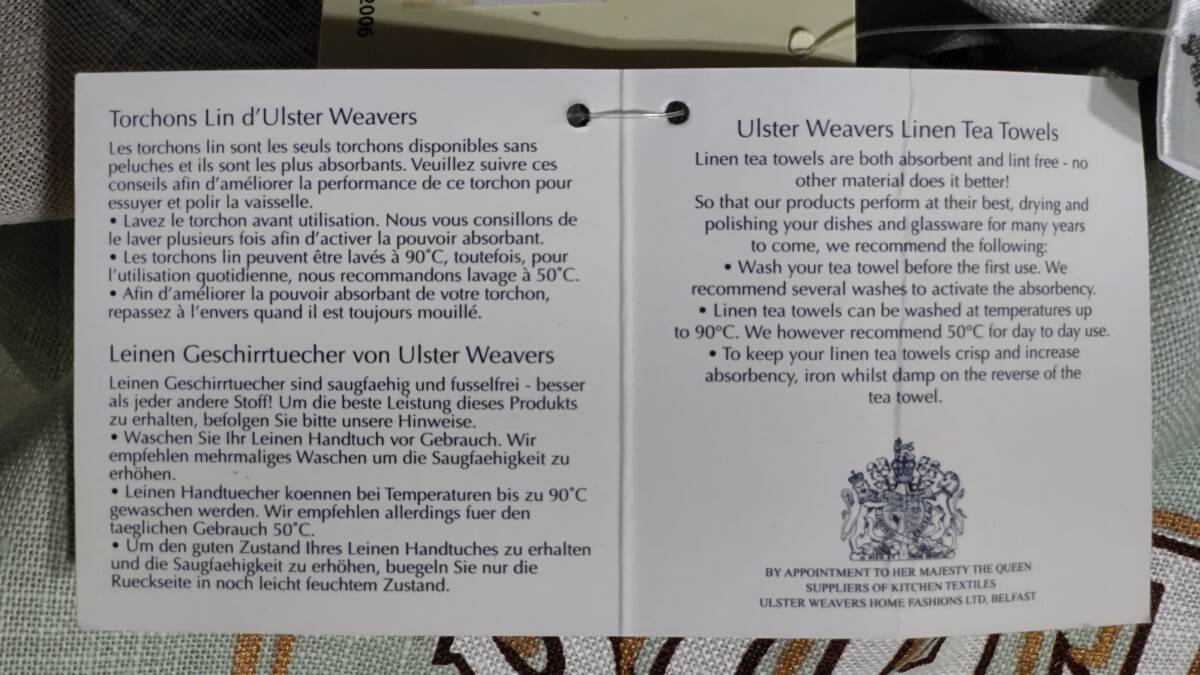 530-11 ティータオル ULSTER WEAVERS アルスターウィーバーズ(リネン・麻100% 46×75㎝ 中国製)Catalogue of SEEDS RICHARD SMITH&Co.