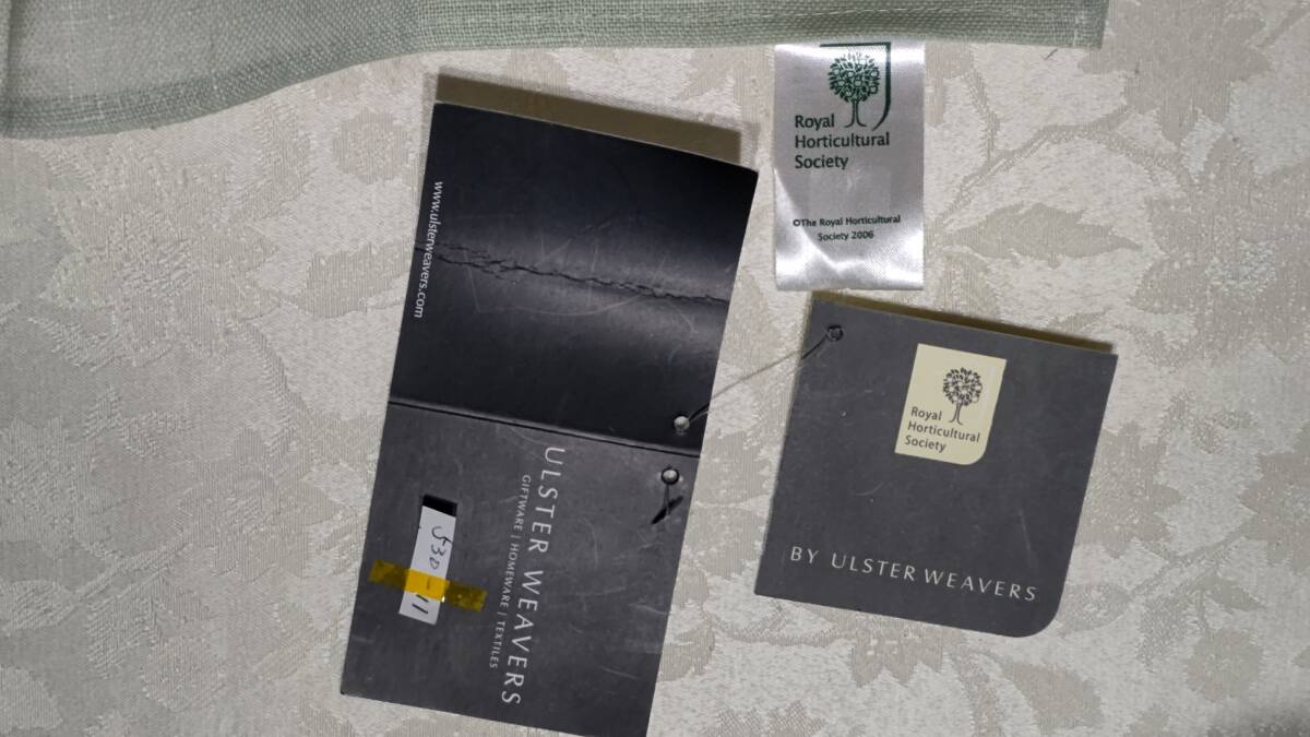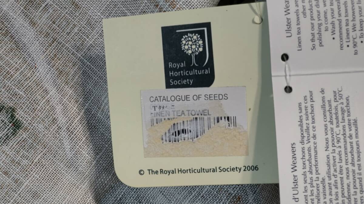 530-11 ティータオル ULSTER WEAVERS アルスターウィーバーズ(リネン・麻100% 46×75㎝ 中国製)Catalogue of SEEDS RICHARD SMITH&Co. 1898 WORCESTER 2006年 王立園芸協会 Royal Horticultural Society タグ付き