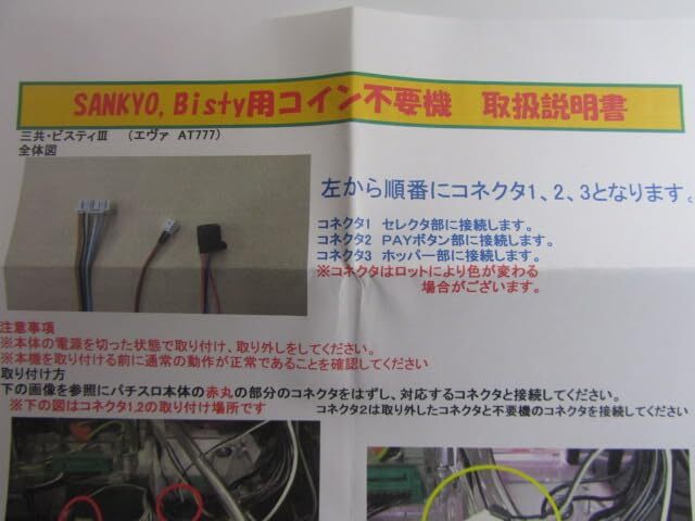 セレクター・BET(精算)・ホッパーのピン数・コネクター形状・取付箇所の動作確認の上、お願い致します。