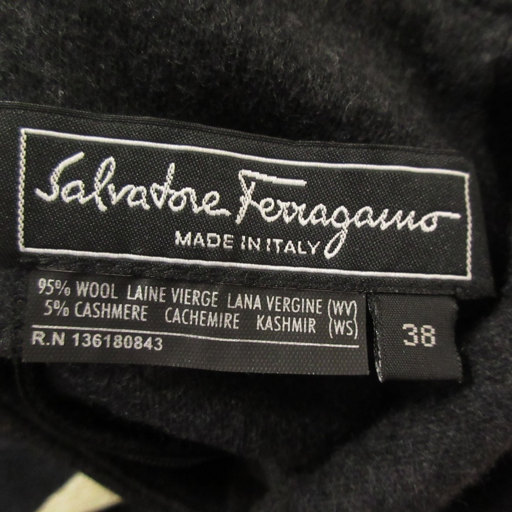 美品 Salvatore Ferragamo サルヴァトーレフェラガモ ウール×カシミヤ モックネック 長袖 ミモレ丈ワンピース サイズ38 グレー