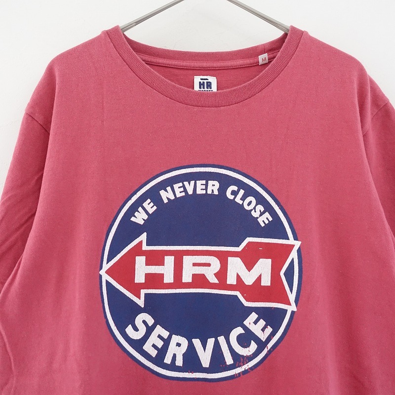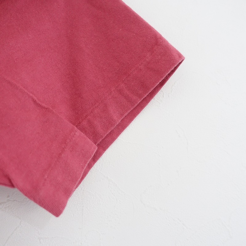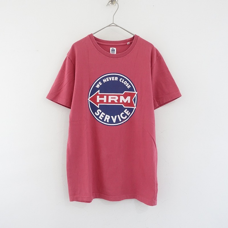 | HOLLYWOOD RANCH MARKETのロゴプリントTシャツです。カラーはフェード感があるレッドです。柔らかく、程よい厚みの綿天竺を使用。クルーネックの半袖Tシャツにヴィンテージライクなプリントがあしらわれております。 |