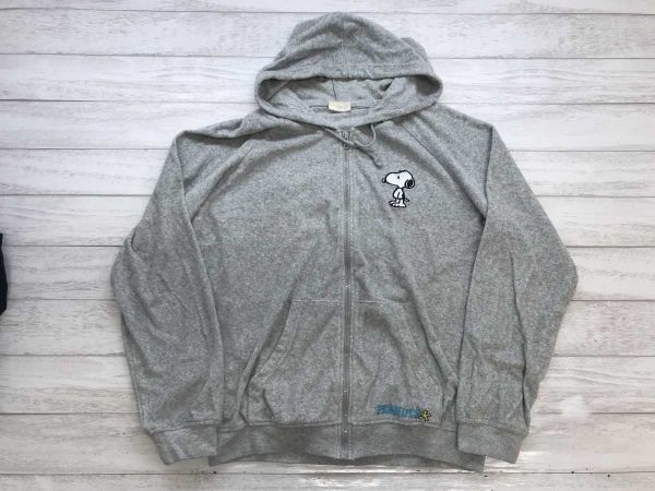 スヌーピー SNOOPY ピーナッツ PEANUTS アメカジ サーフ パイル地 ジップアップパーカー ジャケット レディース コットン混合 LL グレーです。