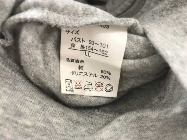 サイズはLLで着丈57cm、身幅52cm、袖丈60cm です。