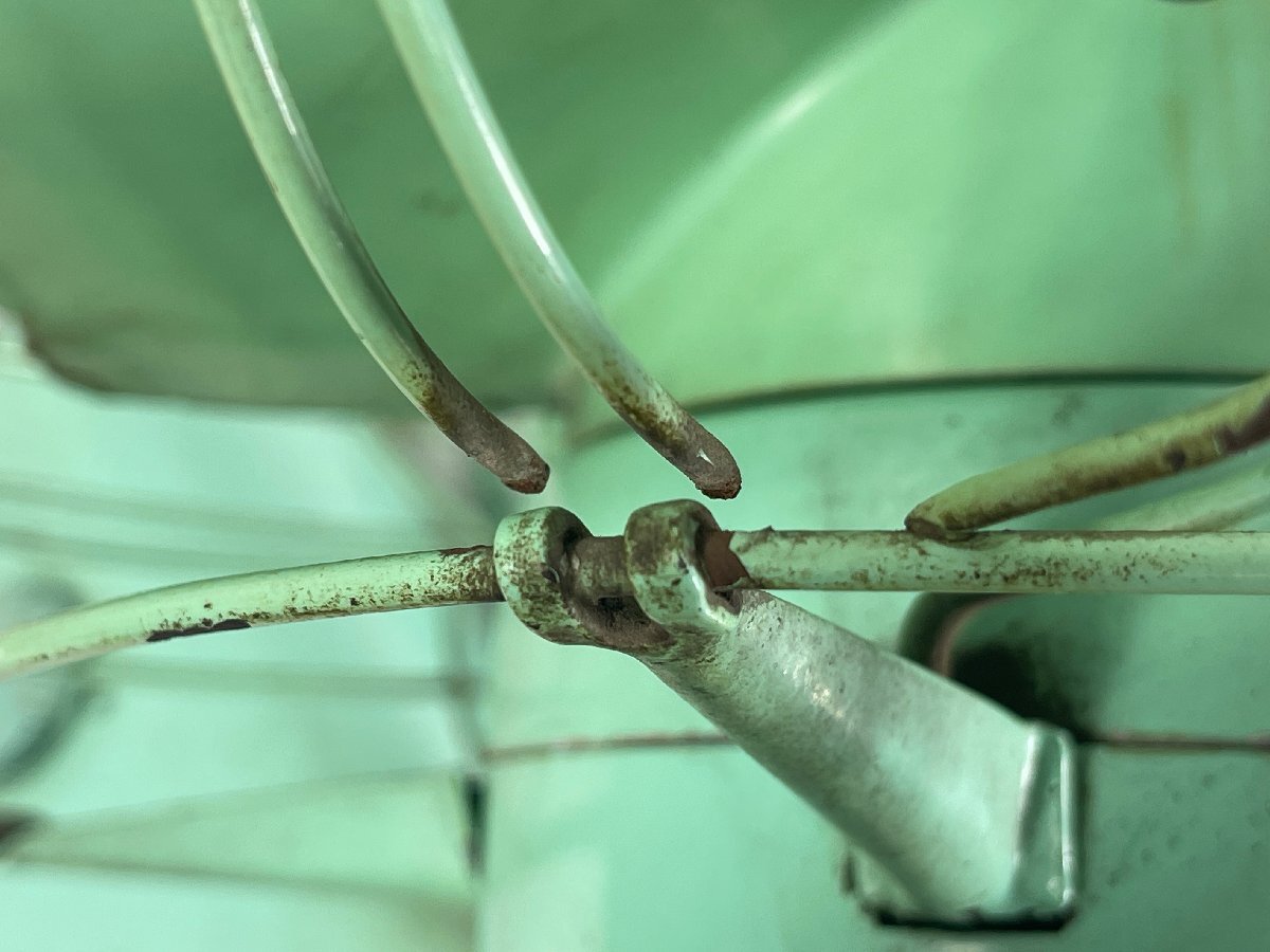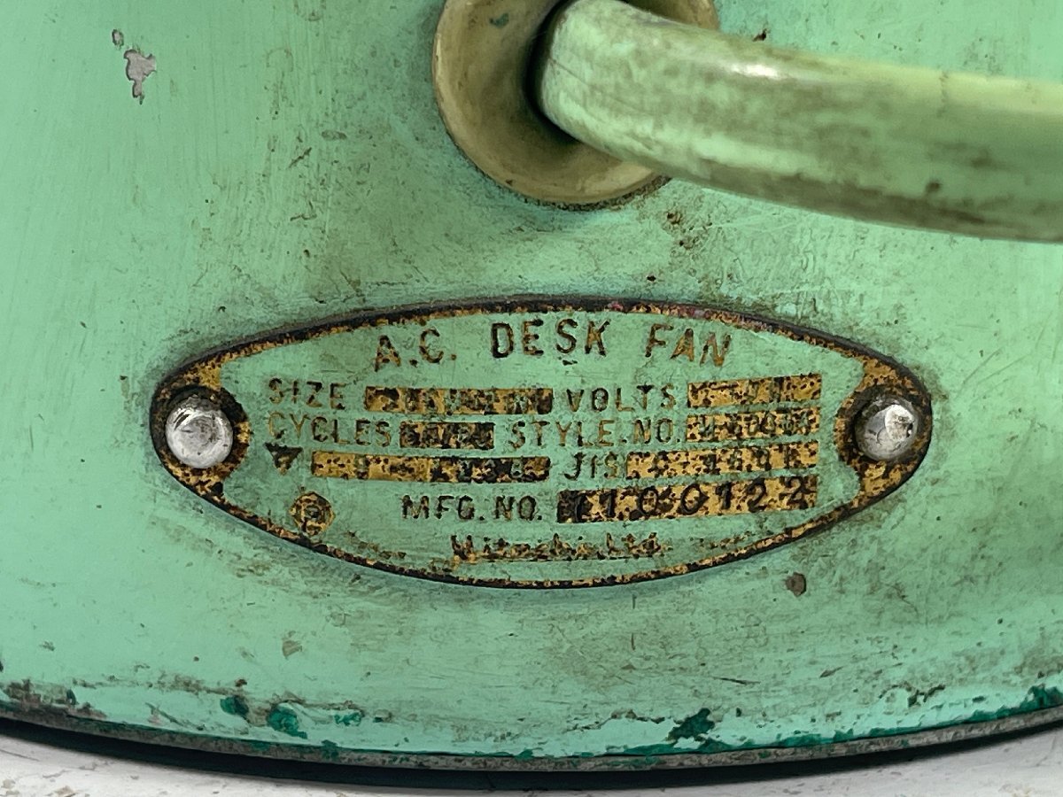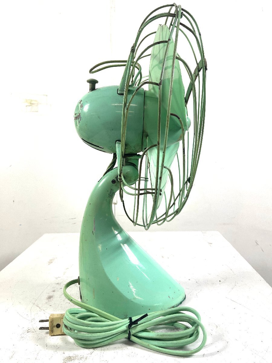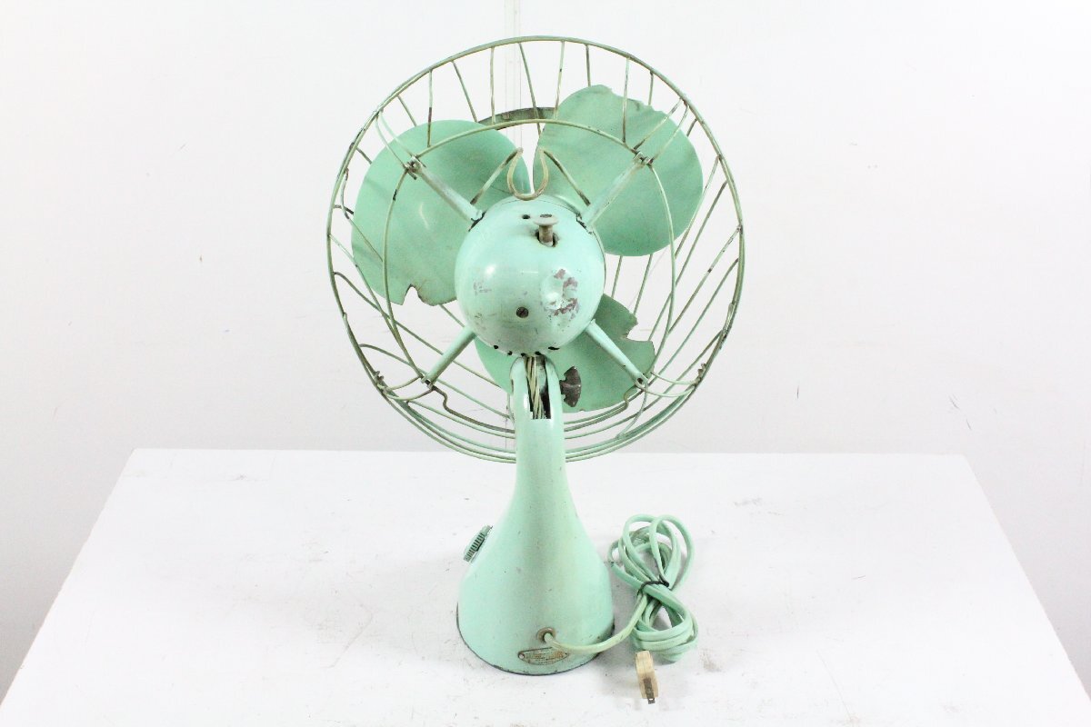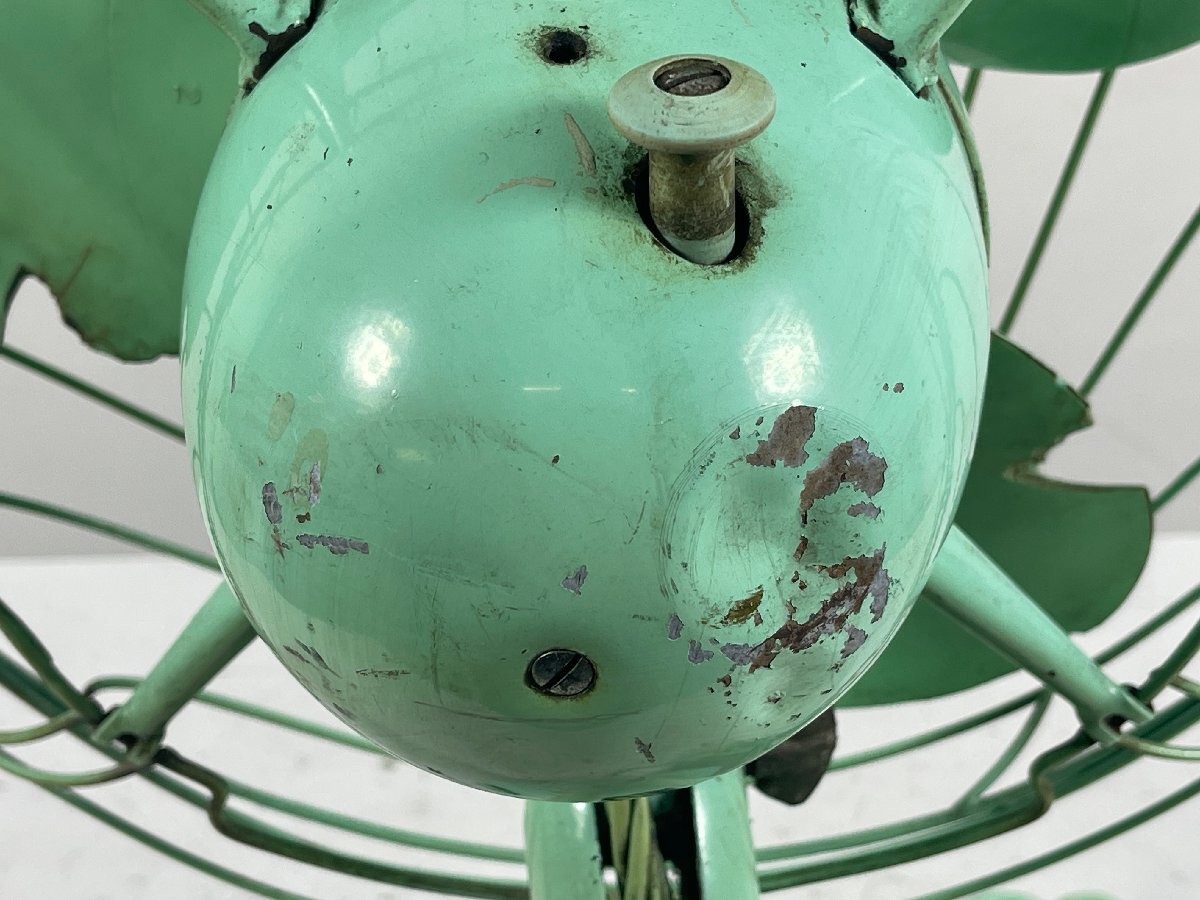 ・銘板に錆があり、タイトル型番はあくまで推測となります ・通電動作を試みましたが動作しませんでした ・モーター軸の固着がひどく注油では改善できません ・通電中にうなり音が出ますが、回転動作できない状態です ・羽根が劣化している為、取り外しは行っておりません ・羽根には割れや欠けなどの破損個所が多数ございます ・モーターカバー後部が凹んでおります ・電源プラグがNATIONAL製の物に交換されております ・ファンガードの変形やサビ、剥がれが複数ございます ・金属部品のサビ、塗装剥がれが多数あり、状態に難がございます ・経年中古品の為、その他にもキズや傷みがございます 羽根直径:30cm ・その他商品状態に記載の無い動作/状態については未確認です。 ![]() | ||||||||||