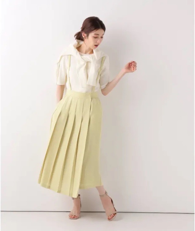 すっきりとしたシルエットなので甘すぎないプリーツスカートに仕上げています。