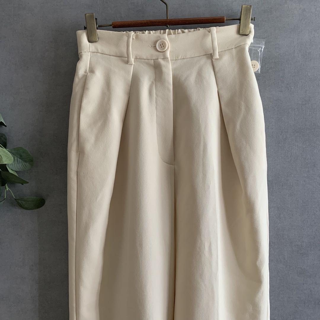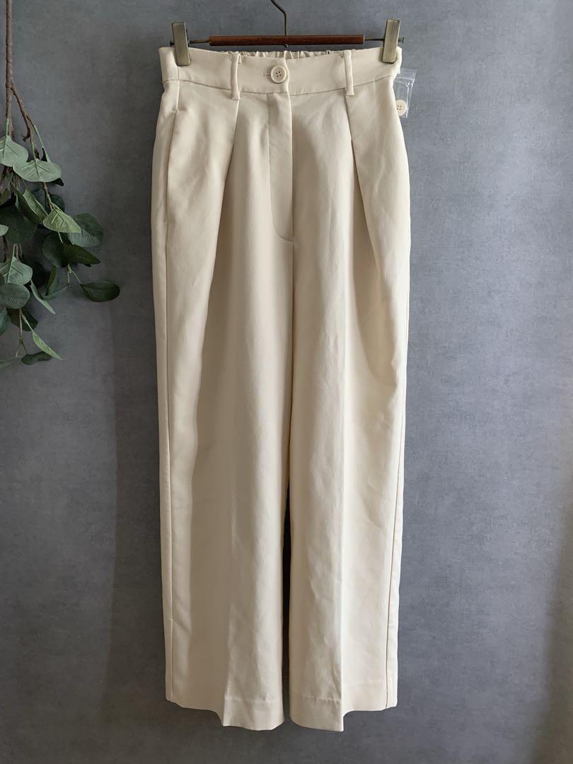 上品なアイボリーカラーが魅力のタック入りパンツです。