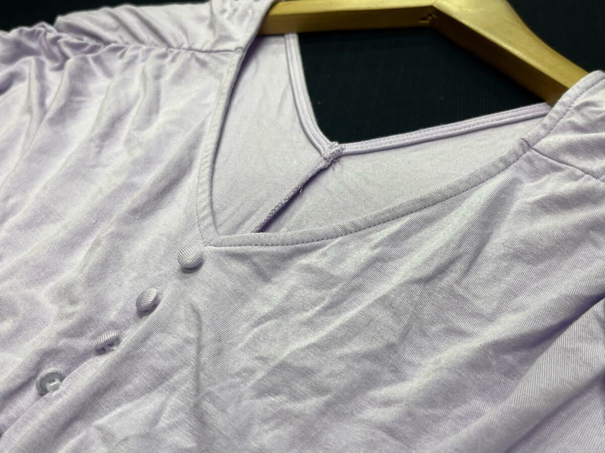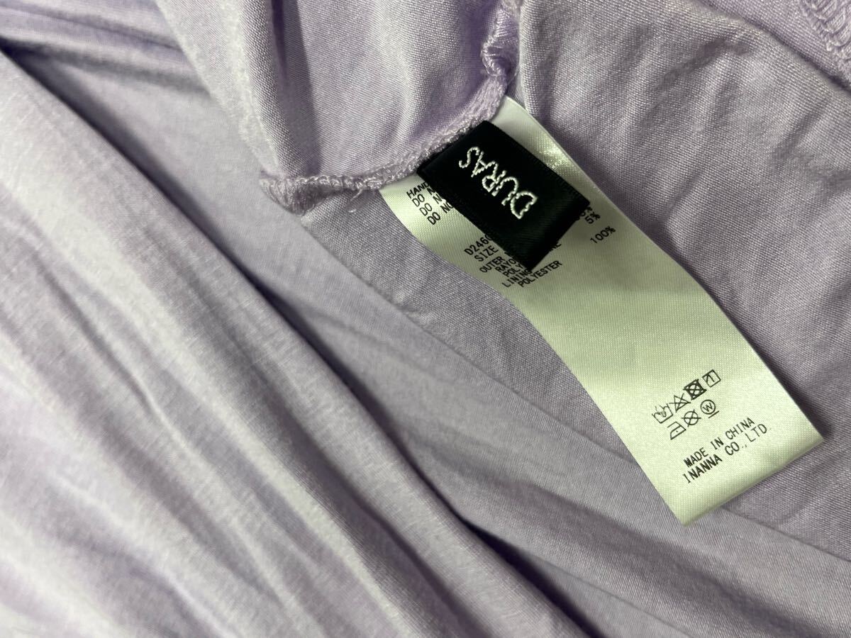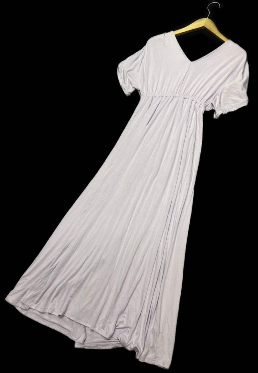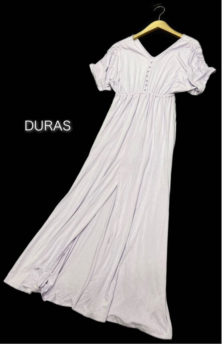 DURAS★デュラス★(F)Vネック 半袖 カットソー ロング ワンピース 前スリット/ラベンダー系