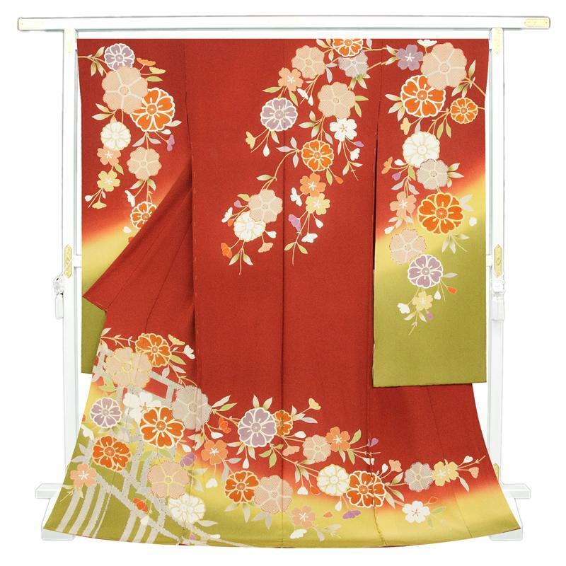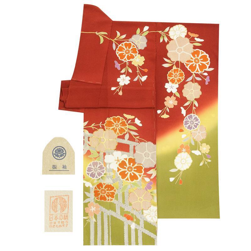 | ★品質・詳細 | ○地色 【こちらの地色は古典の赤×抹茶色系です。】 ○絹織物 ○新品・未仕立の特撰振袖の仮絵羽です。 ○参考上代 780,000円 |