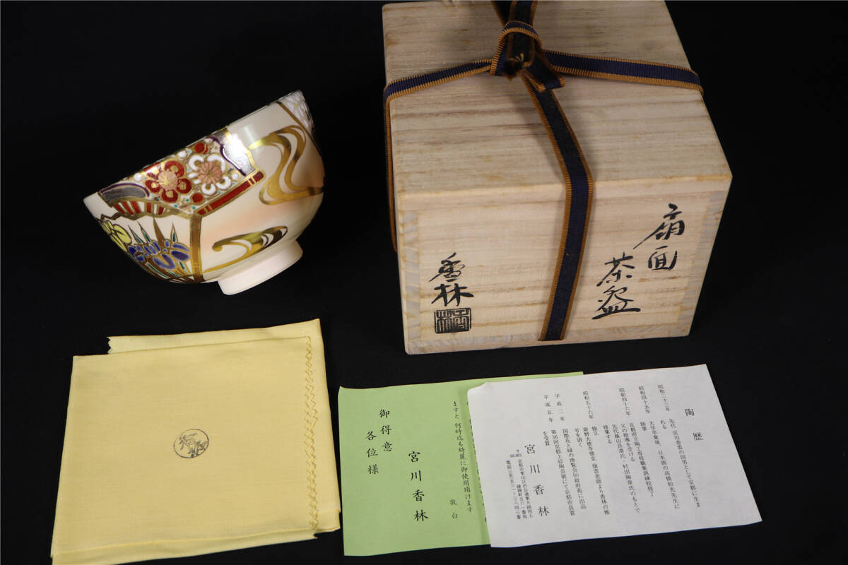 宮川香林 作 扇面 茶碗 茶道具 共箱共布 |