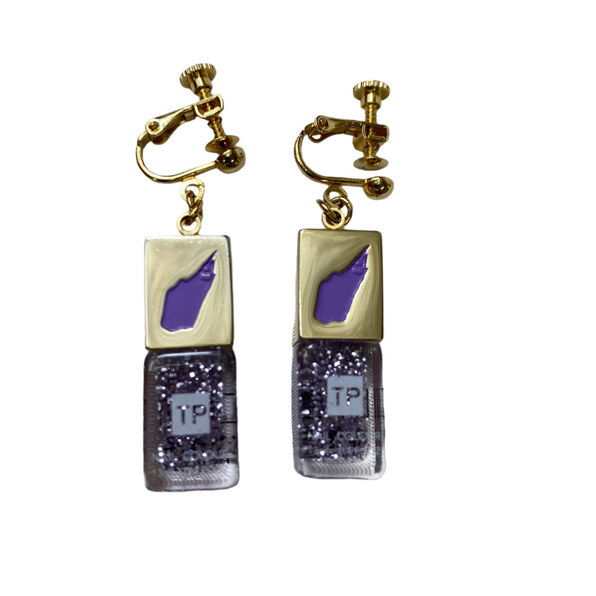 イヤリング ネイルモチーフ ゴールドカラー パープル