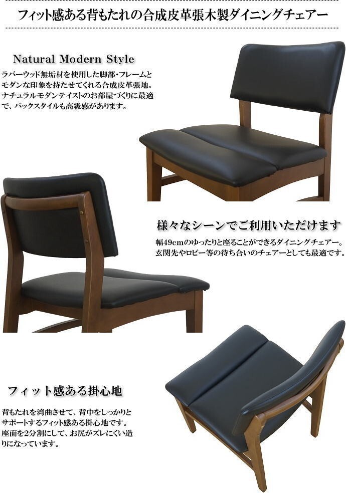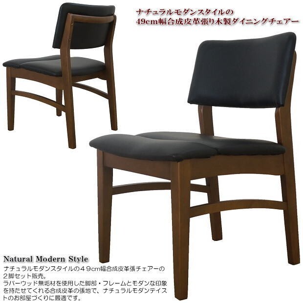 | 【商品名】 | ナチュラルモダンスタイルの49cm幅合成皮革張り木製ダイニングチェアー2脚セット | |
